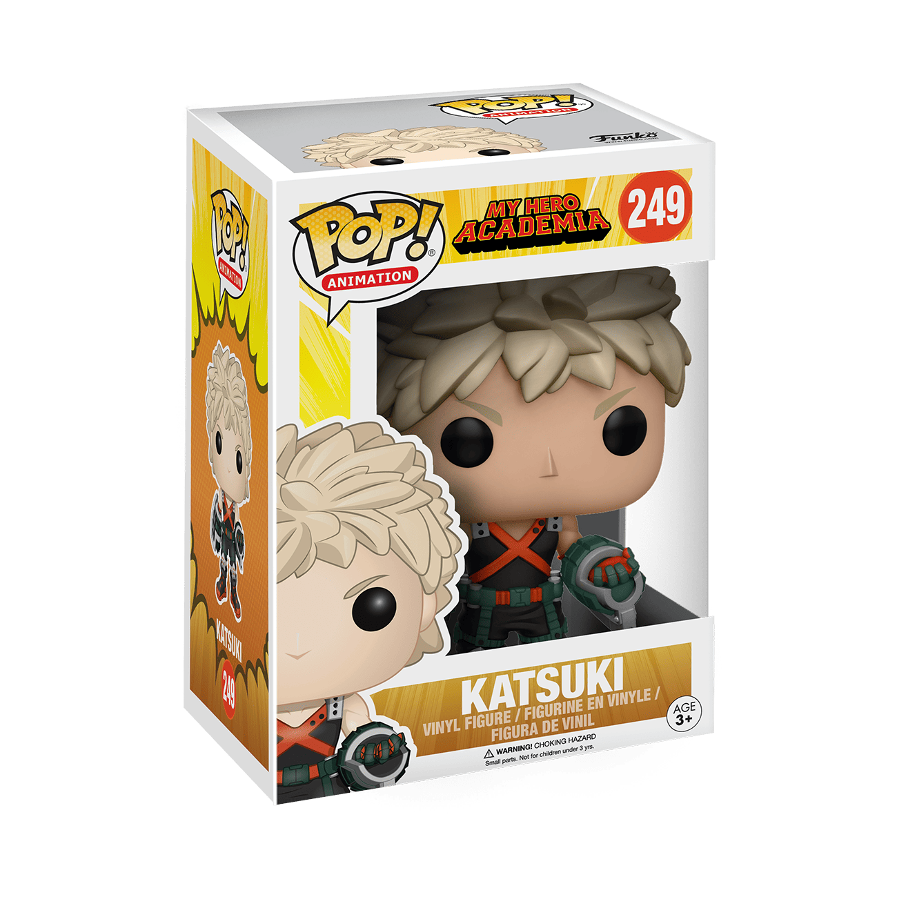 Aiming to be a Pro Hero, Katsuki Bakugo will need to persevere through his U.A. High School training to prove that he's hero material. Help Pop! Katsuki find the right mentor in your My Hero Academia collection. Vinyl figure is approximately 4.5 in (11.4 cm) tall.