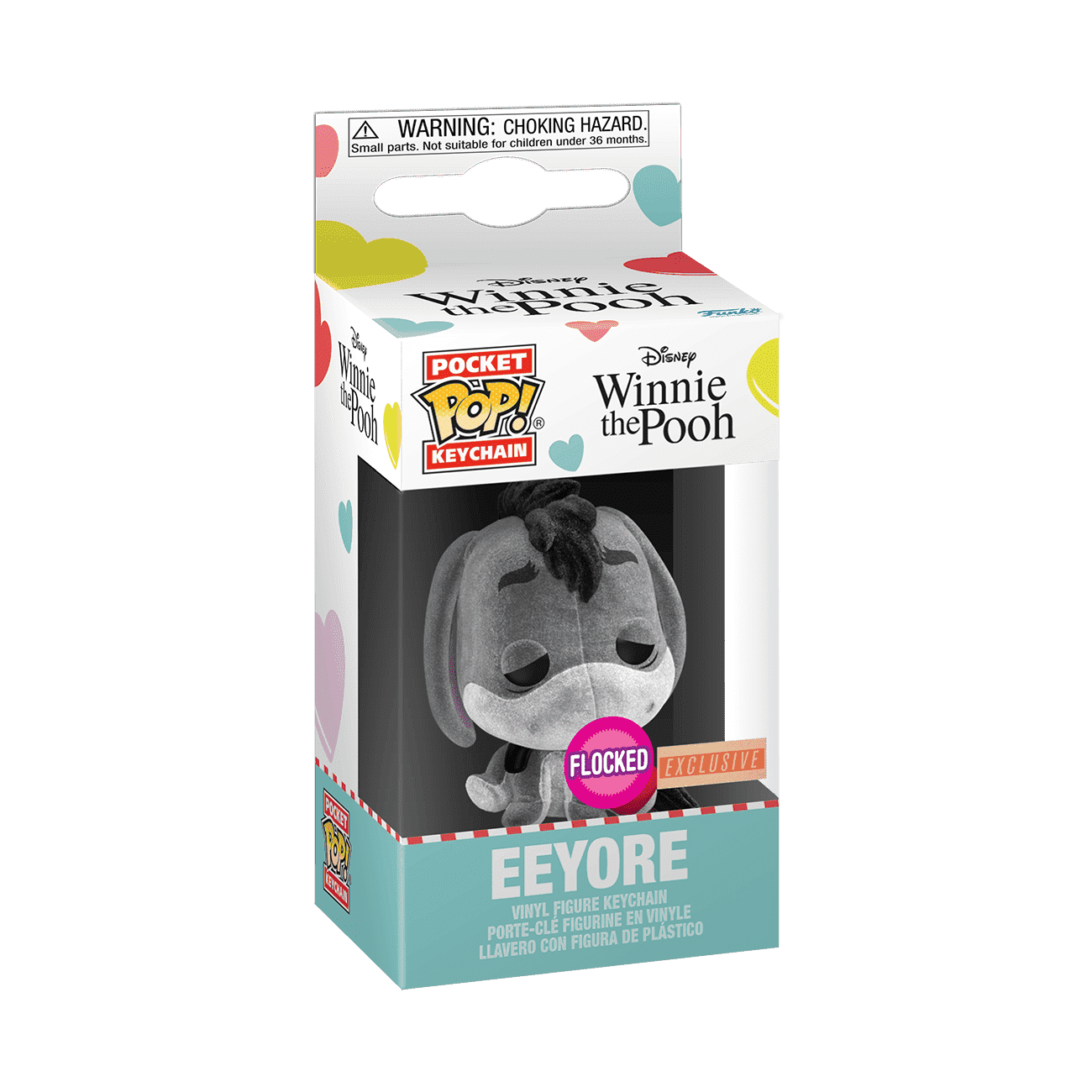 Open your heart to exclusive, flocked Pocket! Pop! Eeyore Keychain! He’s got his heart on a string, and he’s ready to join your Disney collection. Journey to Hundred Acre Woods and get ready for adventures with Pocket Pop! Keychain Eeyore and all his friends. Vinyl keychain is approximately 3 in (7.6 cm) long.