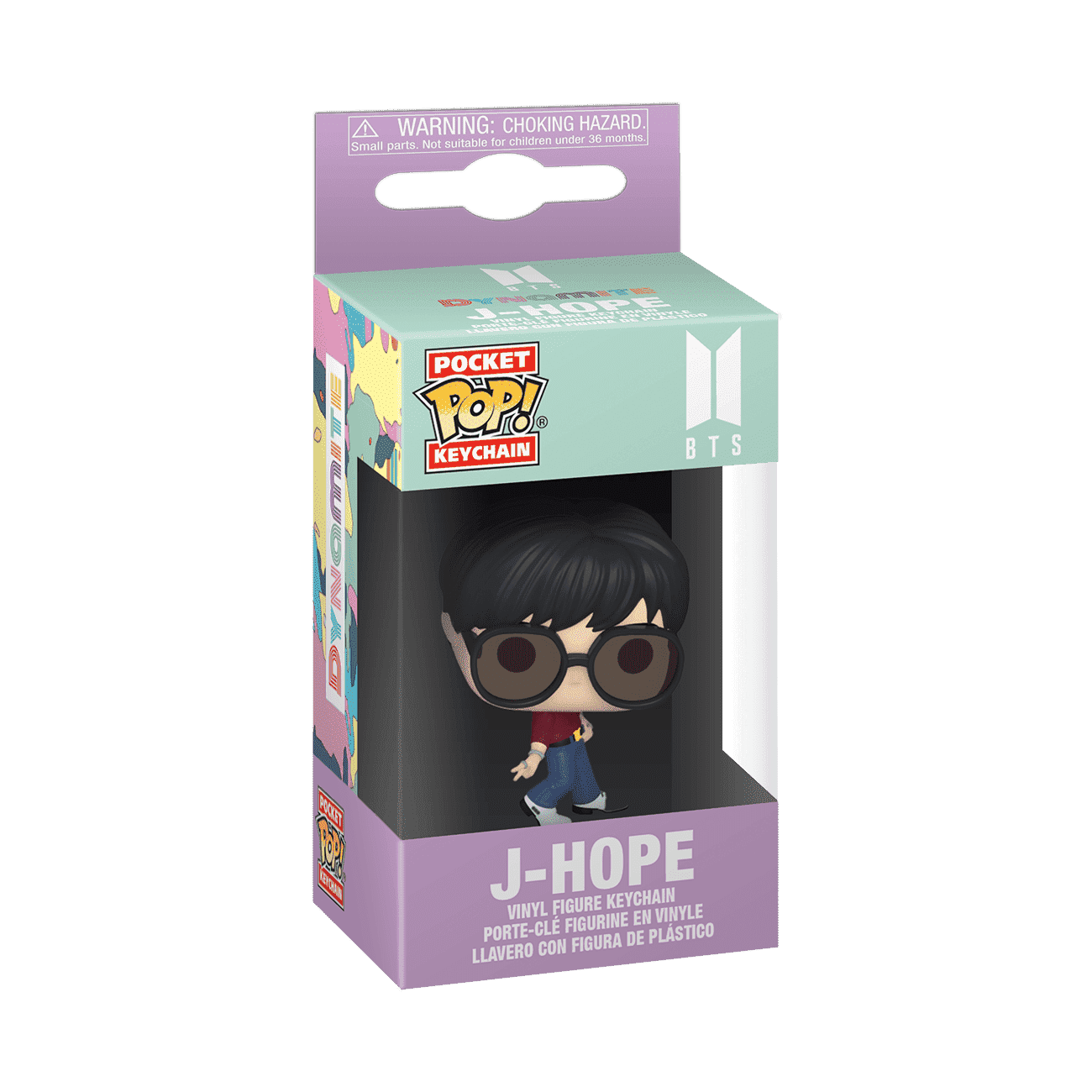 Carry a Pocket Pop! Keychain of one of your favorite BTS members, j-hope. Vinyl keychain is approximately 4 in (10.2 cm) long.
