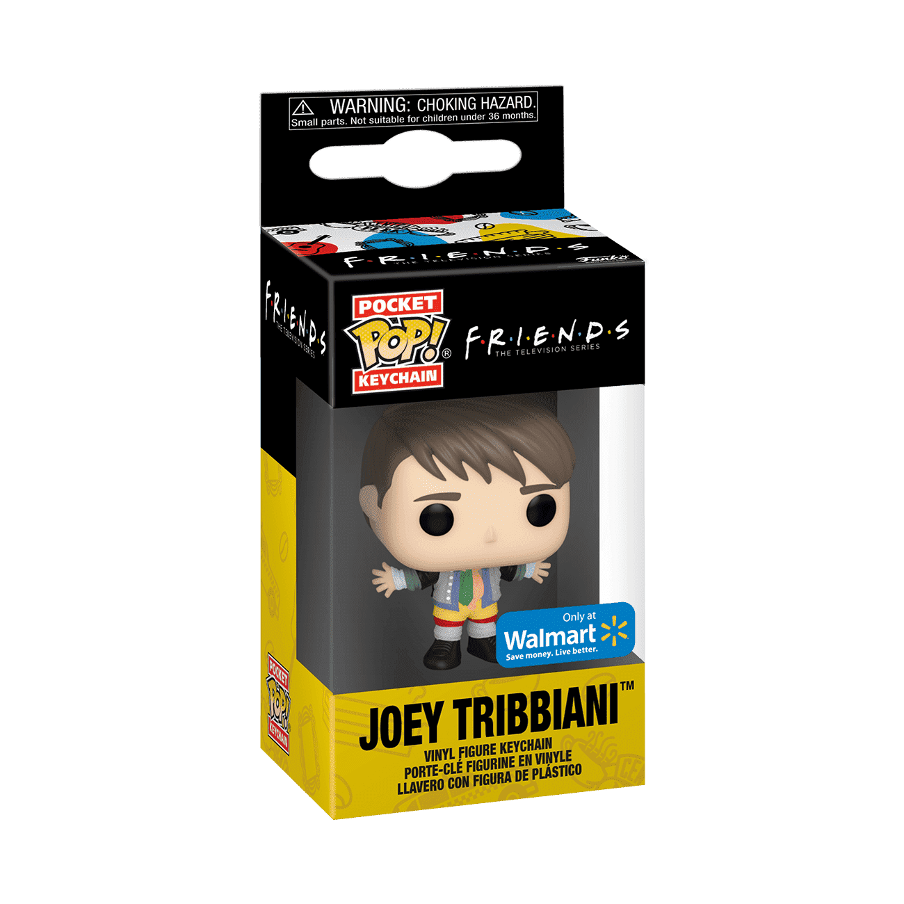 Revenge is tailor-made for Chandler! Exclusive Pocket Pop! Keychain Joey Tribbiani is wearing all of Chandler’s clothes. Put Chandler’s fears at rest by putting Pop! Joey Tribbiani in charge of your keys—before he threatens to do lunges. Set the stage for all your favorite Friends characters and collect them all. Vinyl keychain is approximately 4 in (10.2 cm) long.