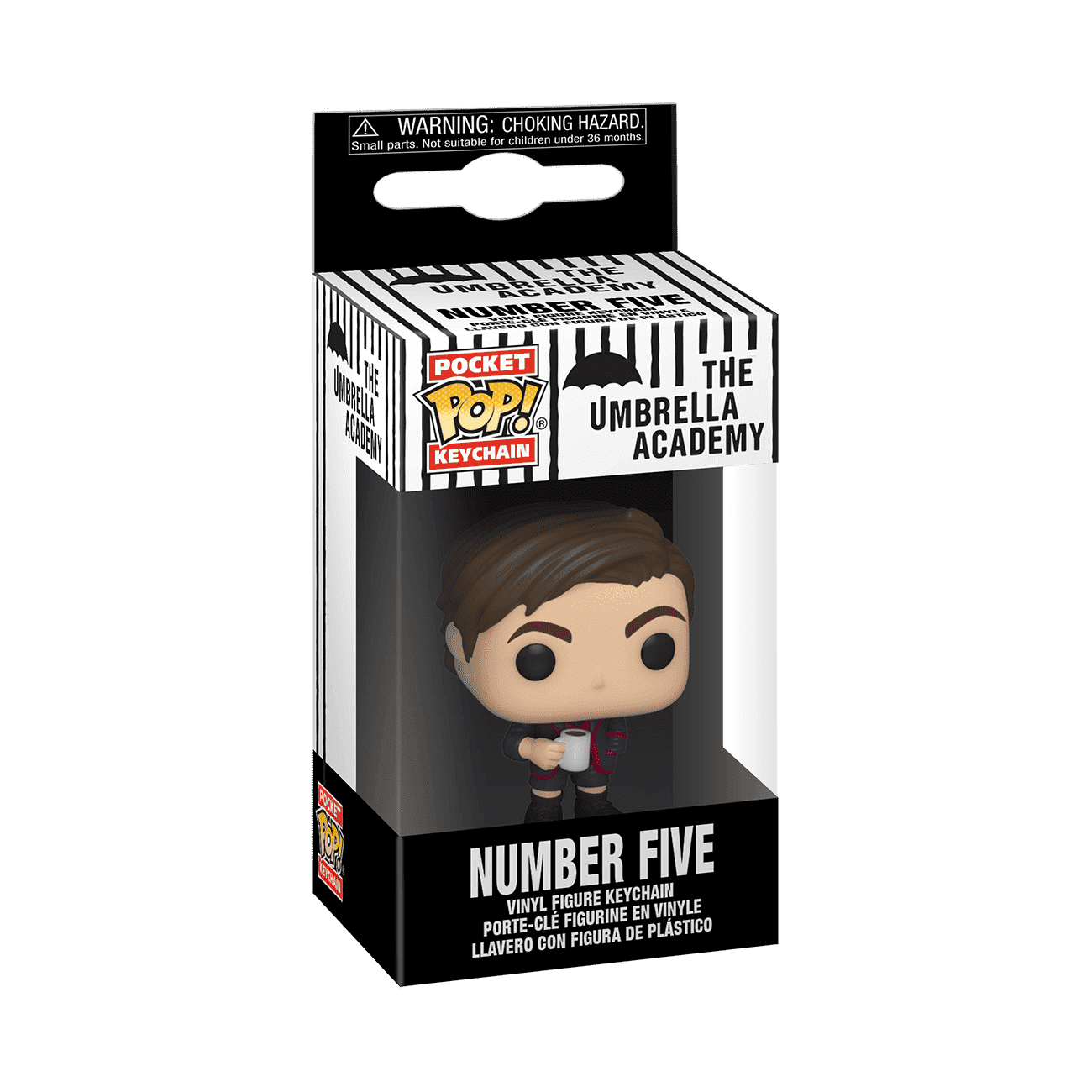 Stop the apocalypse from ravaging your The Umbrella Academy collection by adding Pocket Pop! Keychain Number 5 to be a mobile lookout. Vinyl keychain is approximately 4 in (10.2 cm) long.