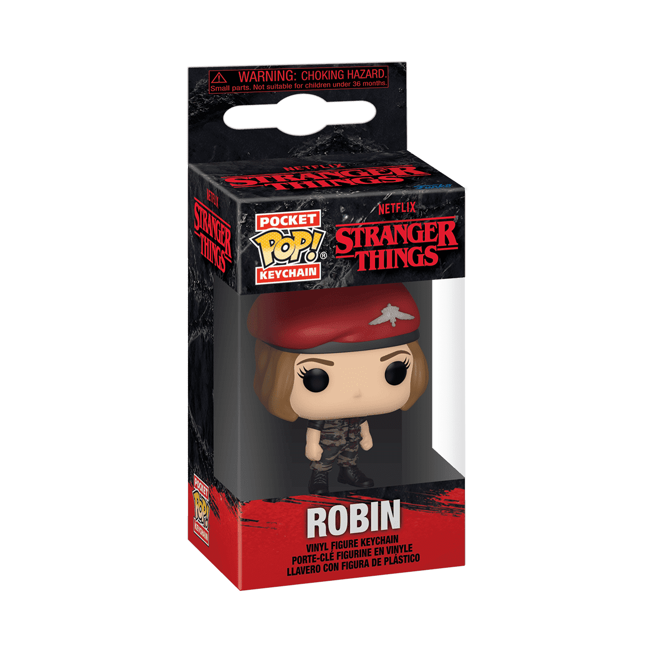 Hawkins, Indiana is harboring dangerous and supernatural secrets. Bring home the happenings, characters, and breakthrough moments of Stranger Things with your own Pop! Keychain Robin wearing her hunter outfit. Vinyl keychain is approximately 4 in (10.2 cm) long.