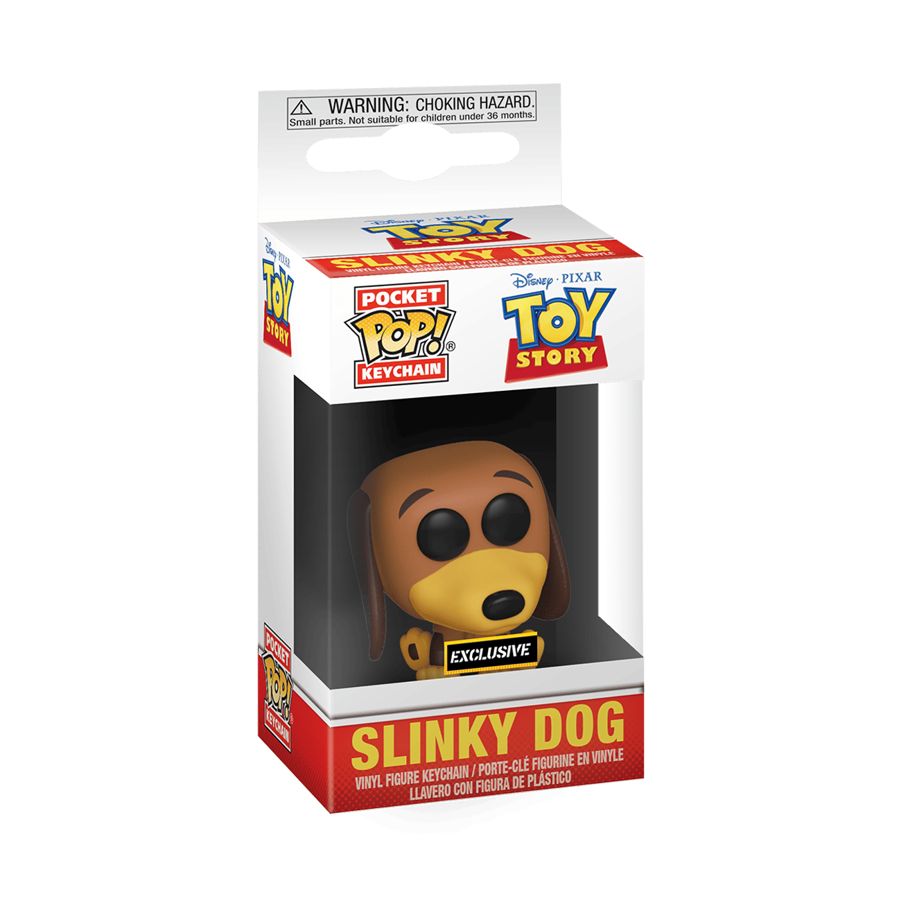Pocket Pop! Keychain Slinky Dog has gotten separated from Woody and the rest of the group. Will you reunite him with the Toy Story figures in your Disney-Pixar collection? Vinyl keychain is approximately 3 in (7.6 cm) long. Please note exclusive sticker may vary on box.