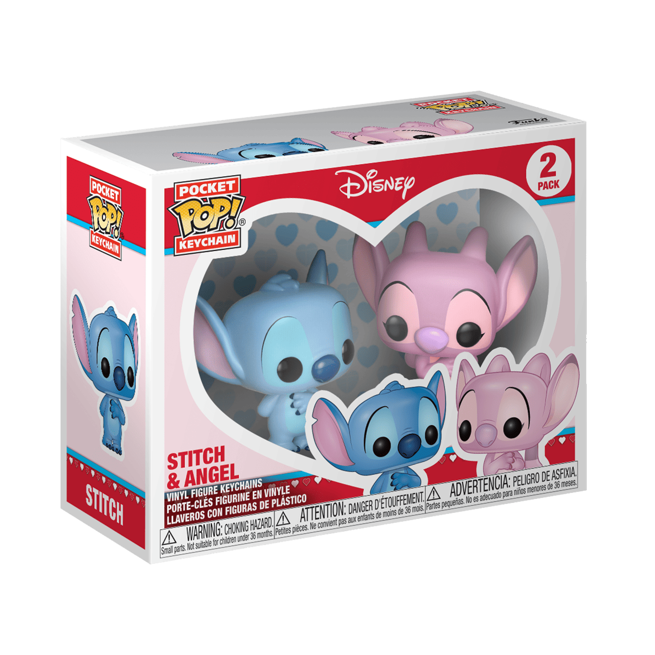 Show your sweetheart that they're part of the family with the 2-pack Pocket Pop! Keychains Stitch and Angel. Or treat yourself to adding these cuties into your Lilo and Stitch collection. Vinyl keychains are approximately 4 in (10.2 cm) long.