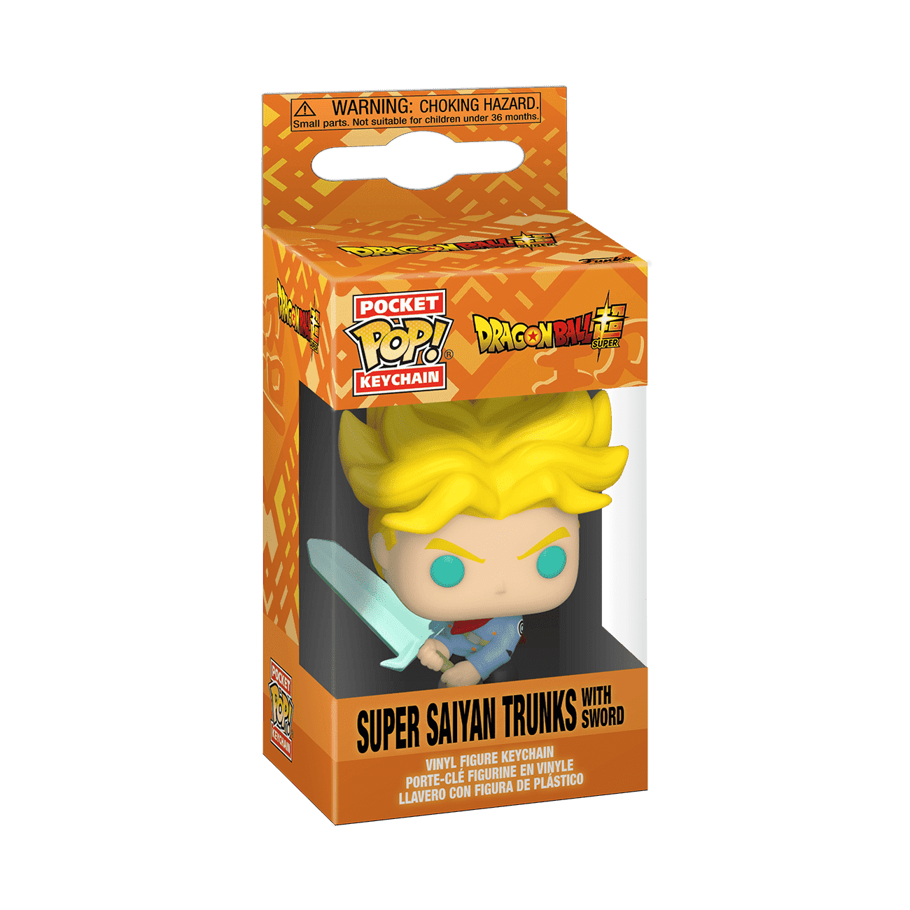 Trunks is the son of Vegeta and Bulma, and the heir to Capsule Corporation, an influential and successful company. That isn’t all though. In an alternate universe the Dragon Team was blindsided and mostly killed off by aliens attacking Earth, so Trunks uses a time machine to warn the team of what is to come to help save Earth and fight alongside the Dragon Team again. Collect Pop! Keychain Super Saiya Trunks with Sword for your Dragon Ball Super collection to reunite the Dragon Team. Vinyl keychain is approximately 4 in (10.2 cm) long.