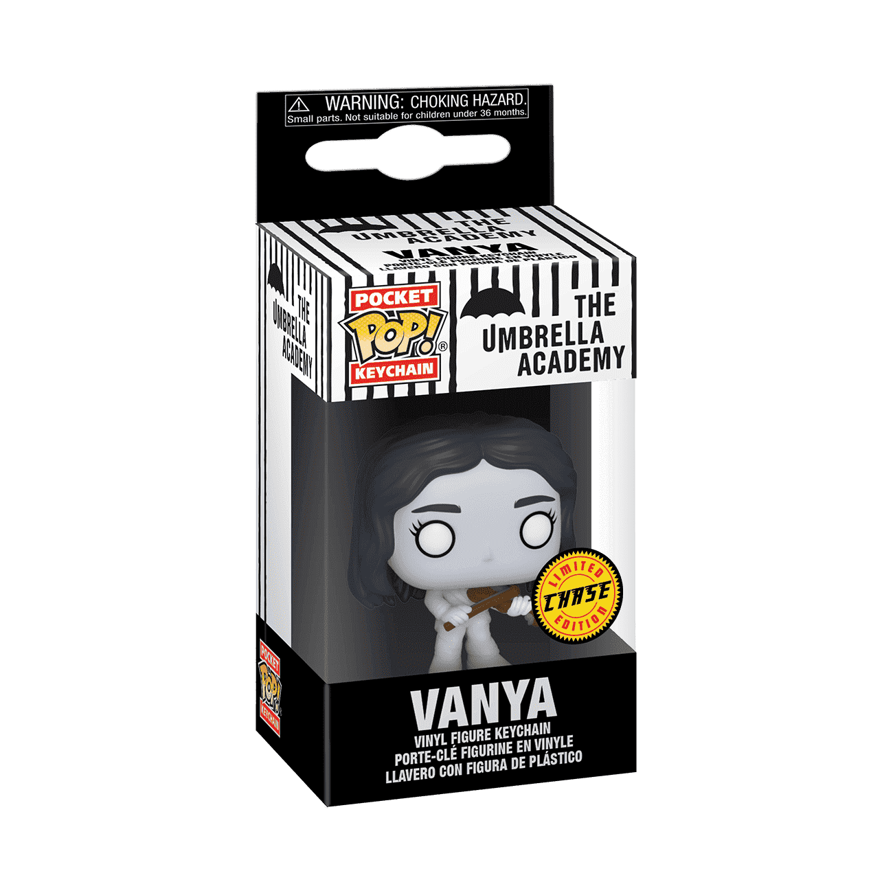 Stop the apocalypse from ravaging your The Umbrella Academy collection by adding Pocket Pop! Keychain Vanya to be a mobile lookout. There's a 1 in 6 chance you may find the white chase. Vinyl keychain is approximately 4 in (10.2 cm) long. Please note: Chase variants are shipped at random. Receiving a chase with purchase is not guaranteed.