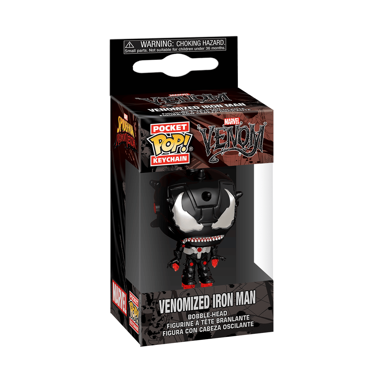 Iron Man is host to Venom in this Pop! keychain. The duo is ready to tear through your Marvel Venom collection or go on your daily adventures with you. Keychain is approximately 3 in (7.6 cm) long.