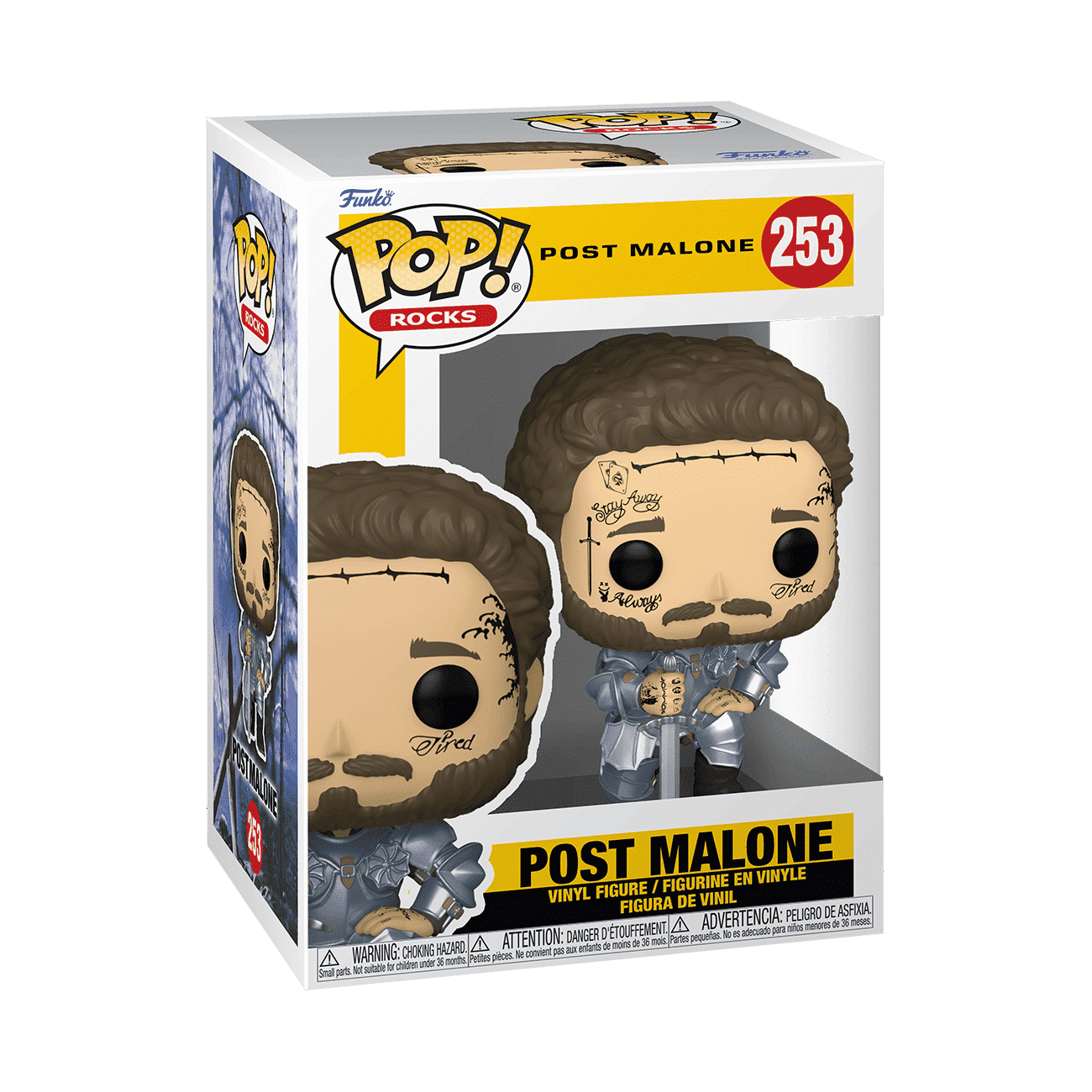 Collect American rap artist, Post Malone, for your music collection with this Pop! Post Malone dressed in a knight's suit of armor. Vinyl figure is approximately 4 in (10.2 cm) tall.