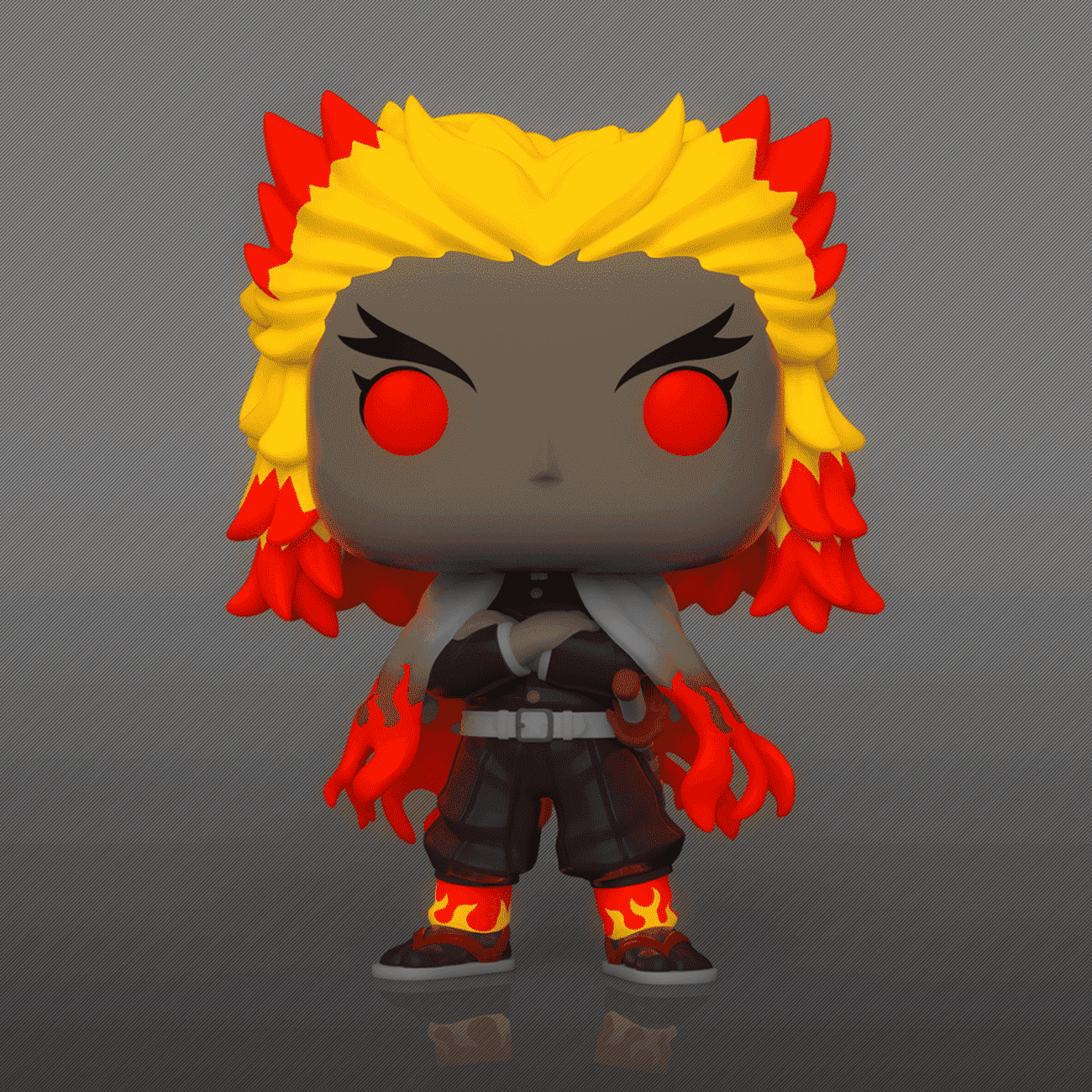 Only two of the Kamado family survived a demon attack, and now Tanjiro and Nezuko are out for revenge. Expand your Demon Slayer collection with this exclusive, glow-in-the-dark Pop! Rengoku. Vinyl figure is approximately 4.15 in (10.5 cm) tall.