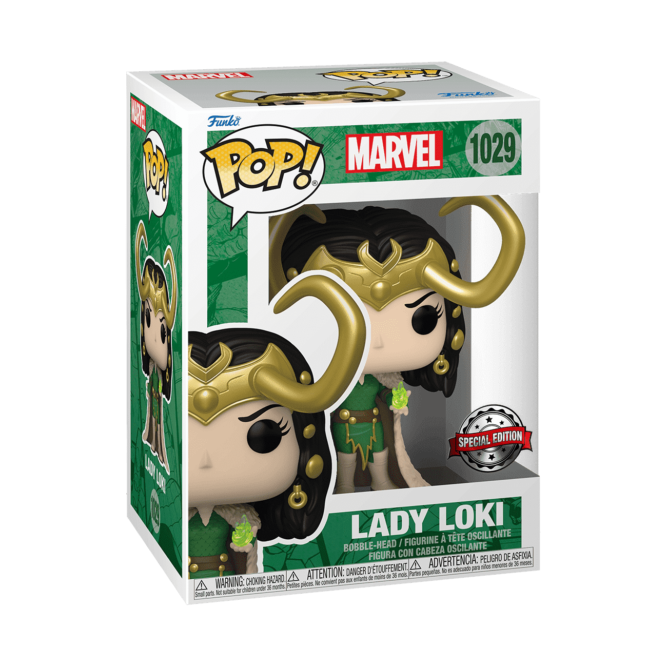 Loki's plans took an unexpected turn when he took the Tesseract. Bring the adventure home and into your collection with Pop! Lady Loki. Act fast to secure her and complete your Pop! Marvel set! Vinyl bobblehead is approximately 4.37 in (11.1 cm) tall.