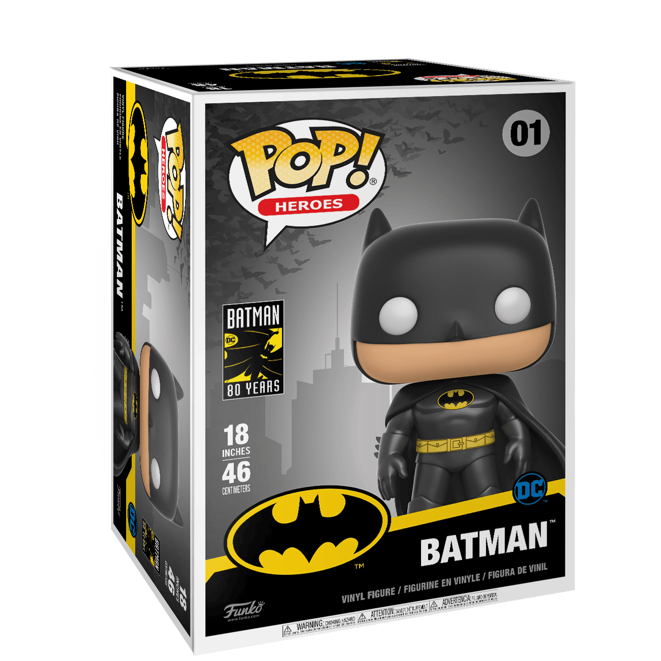 Pop! Batman towers over your DC collection, his cape billowing in the wind as he waits to catch a glimpse of the Bat-Signal. His size should give him the upper hand when havoc breaks out on the Gotham streets. Collectible stands 18 in (45.7 cm) tall.
