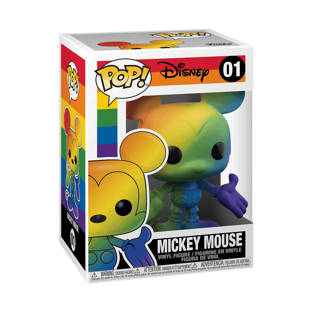 The Pride Pop! collection is a celebration of inclusivity and acceptance. Funko supports the LGBTQ+ community and rejects intolerance and discrimination. A donation has been made to the It Gets Better Project, an organization that uplifts, empowers, and connects LGBTQ+ youth around the globe, in coordination with this program. Show your support and pride with this special edition rainbow collectible of Pop! Mickey Mouse from Disney! Vinyl figure is approximately 4 in (10.2 cm) tall