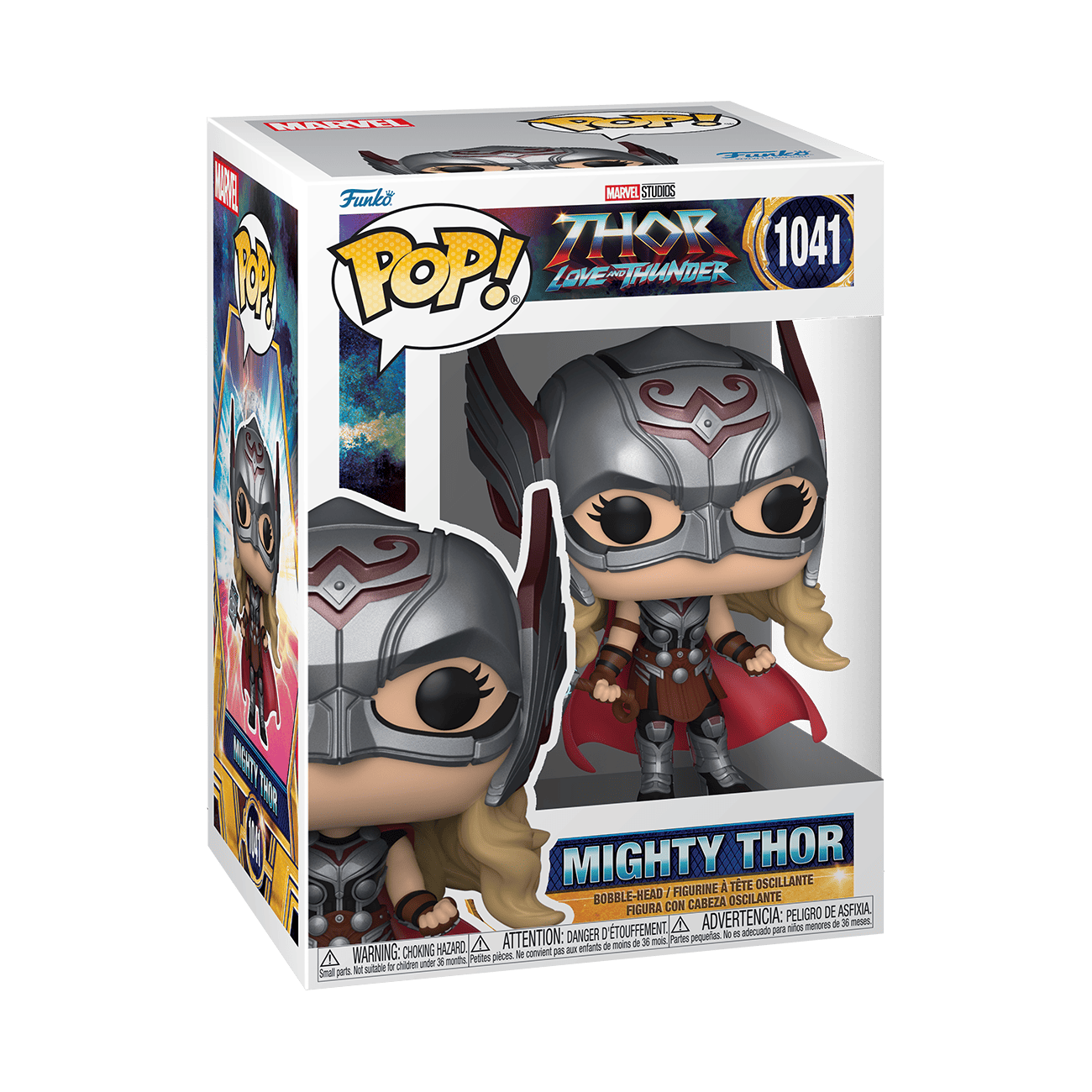 Electrify your Marvel collection with Pop! Mighty Thor. Pop! Mighty Thor, from Marvel Studios' Thor: Love and Thunder, wields Mjolnir. Vinyl bobblehead is 3.95 in (10 cm) tall.
