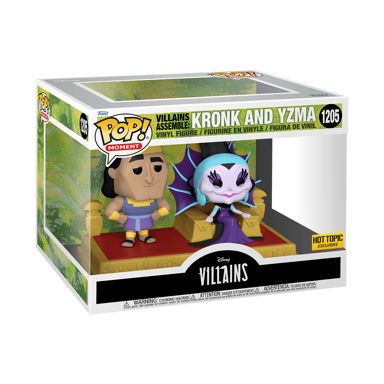 Yzma is out to take Kuzco's throne, by stealth or by force. Eavesdrop on the potentially poisonous schemes with the exclusive, Pop! Moment Disney Villains Assemble: Kronk and Yzma. Seize the moment, and the throne, by adding all 6 of the Disney Villains Assemble set to your collection and connect them to make a new scene. Vinyl figure is approximately 6.5-inches tall and approximately 8-inches long.