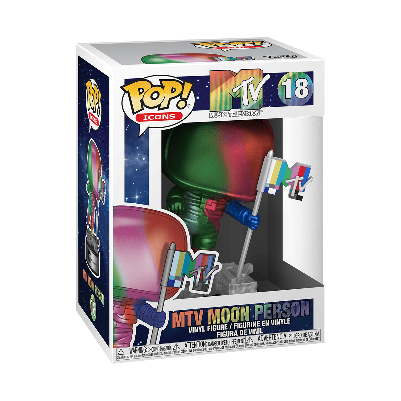 Bring home your own MTV Music Awards with this metallic Pop! Moon Person (Rainbow). Any music collection would be honored to receive the shiny new addition. Vinyl figure is approximately 5.25 in (13.3 cm) tall.