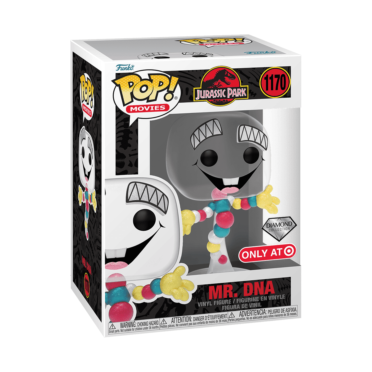 Sign up for a tour with the Exclusive Pop! Mr. DNA from Jurassic Park! This Diamond Collection Exclusive Pop! Mr. DNA shines with diamond glitter details, and he’s ready to come home with you and start you on new adventures. Vinyl figure is approximately 4 in (10.2 cm) tall.