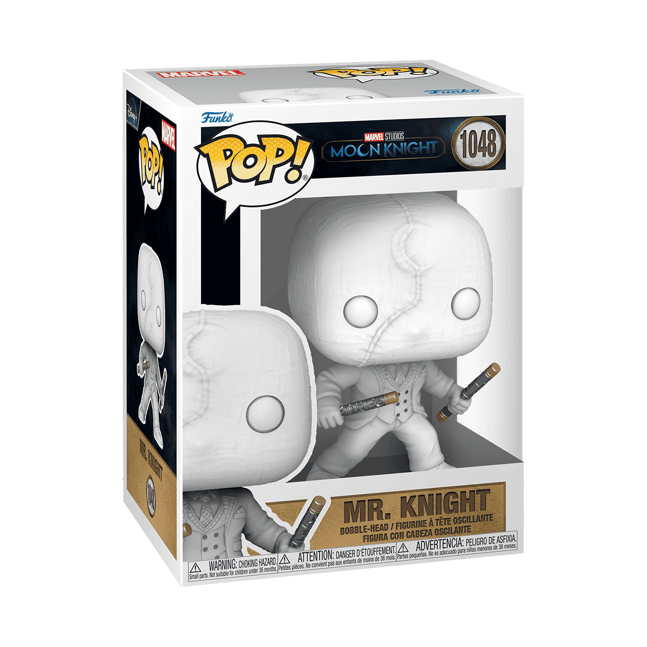 Welcome to chaos. Embrace everything that has brought you to this moment with Marvel’s Moon Knight. Pop! Mister Knight is ready to take on the action as part of your Marvel collection. Summon him to complete the phases of your Moon Knight set. Vinyl bobblehead is approximately 3.83 in (9.7 cm) tall.