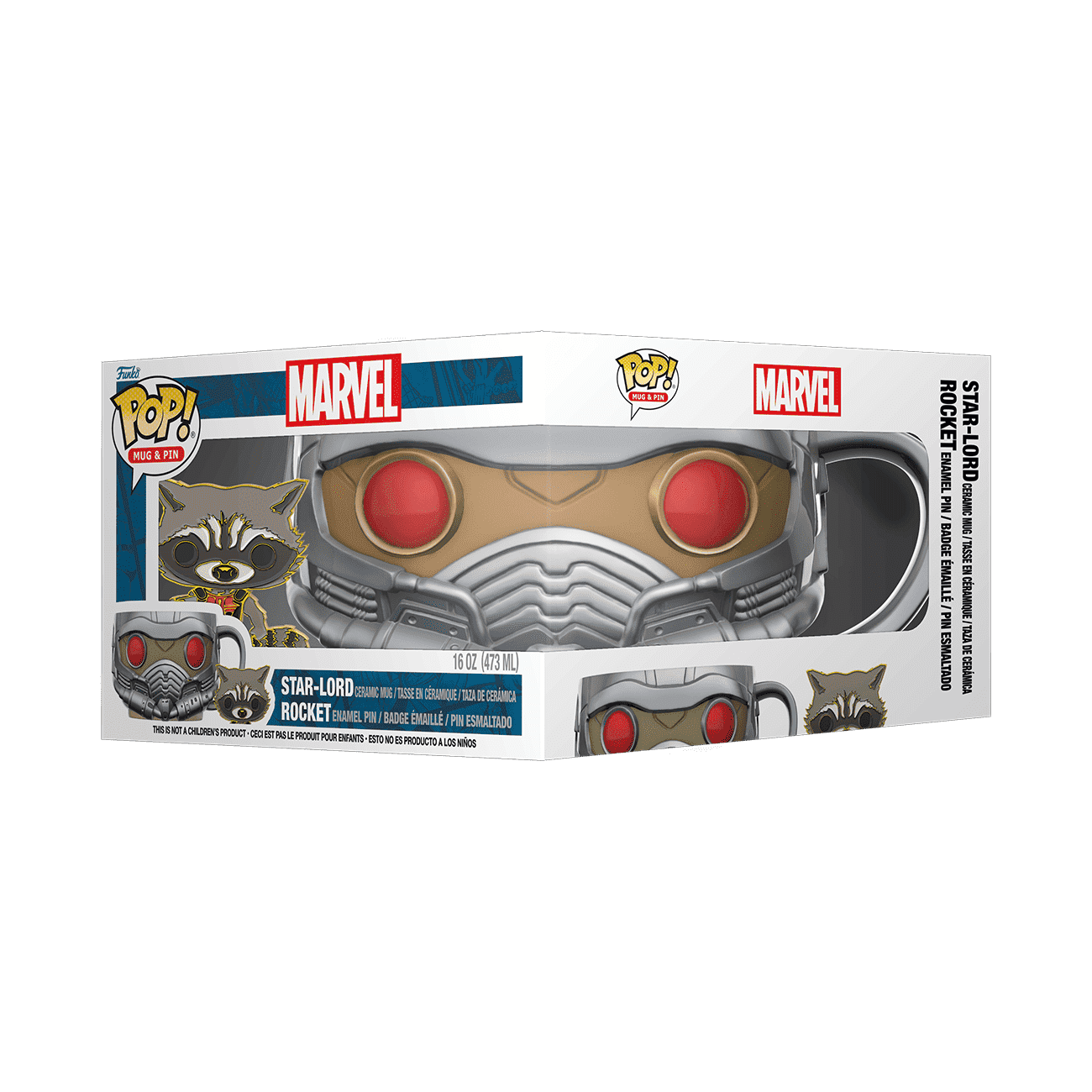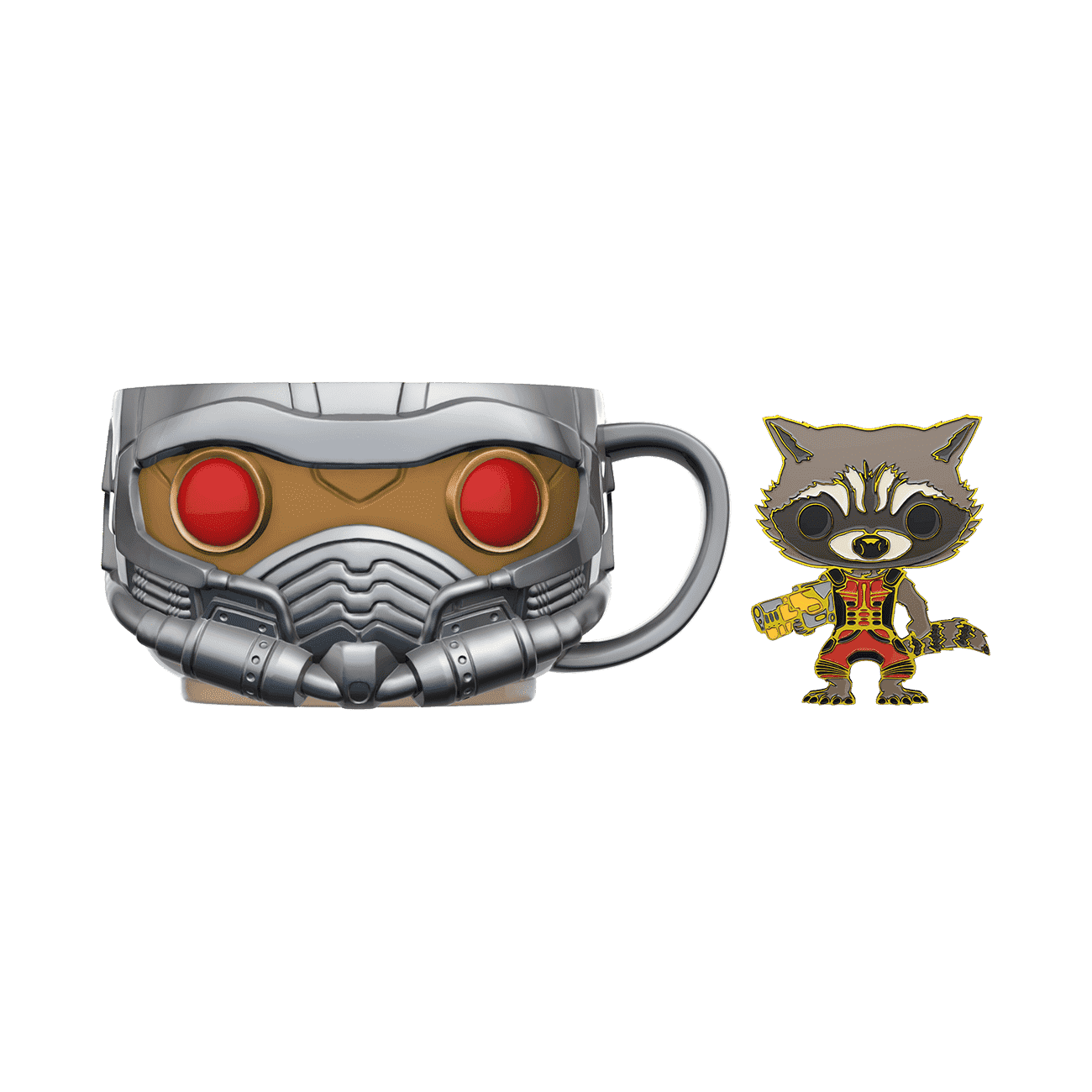 Relax with a mixtape and a warm mug of your favorite beverage with this Pop! Mug and Pin set of Star-Lord and Rocket. The Pop! Mug of Star-Lord features metallic details on his helmet. It’s the perfect mug for catching your breath after a long day of defending the galaxy or just sitting by the fire. The Pop! Pin of Rocket shows him ready for action. Take on any challenge the day brings and expand your Marvel collection.
