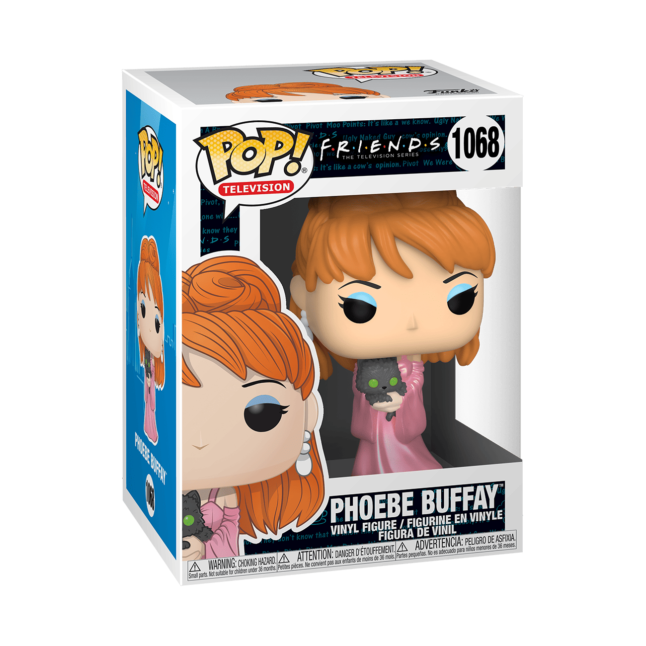 Whether you're at the Central Perk or just in the apartment, grab a cup of coffee and reminisce with Friends. Pop! Phoebe Buffay is holding a grey cat and wearing her fabulous music video outfit to join in on the fun in your collection. Vinyl figure is approximately 4.25 in (10.8 cm) tall.