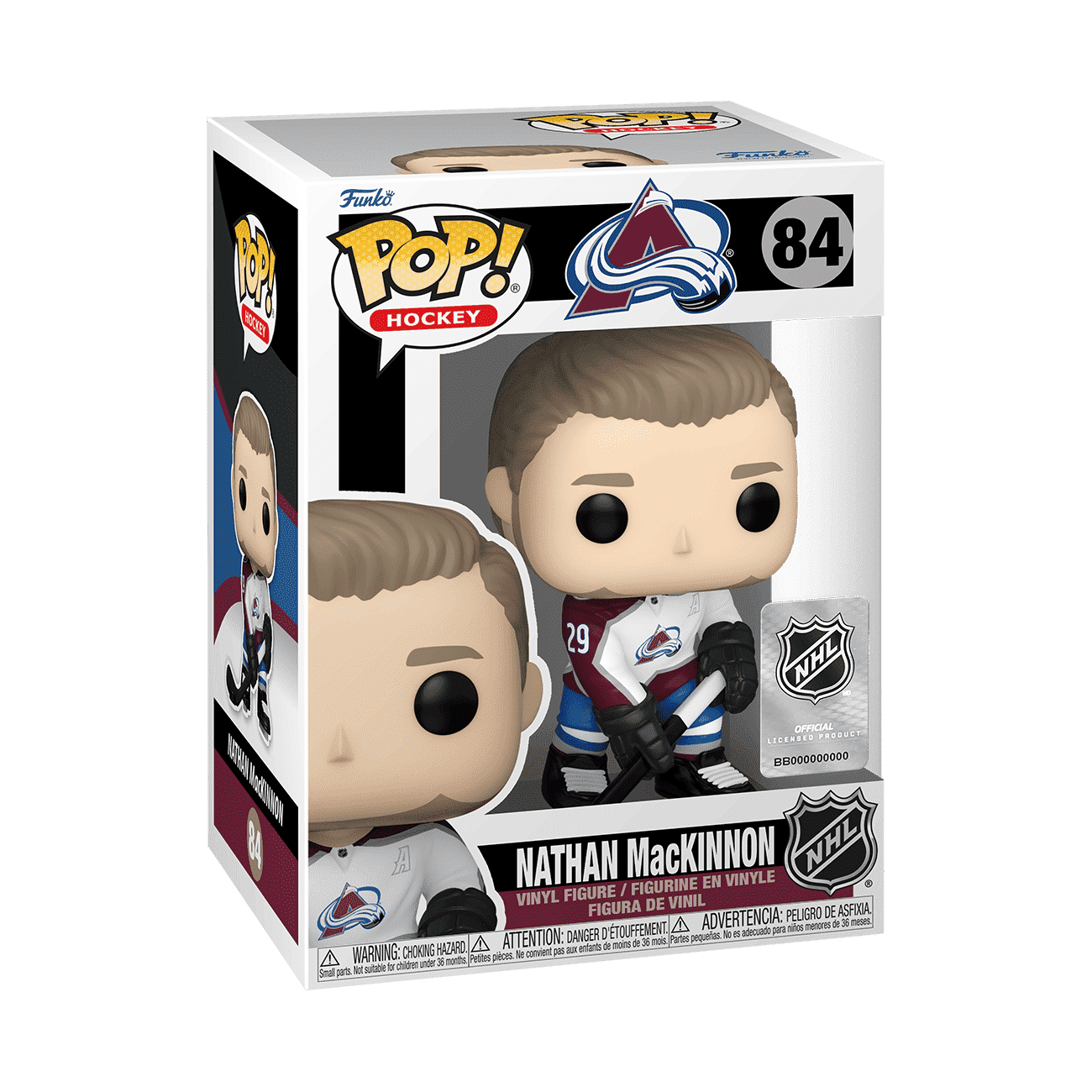 Recruit Nathan MacKinnon, goaltender for the Colorado Avalanche, into your National Hockey League set as a Pop! Pop! Nathan MacKinnon is dressed in his away uniform and ready to skate into your collection. Vinyl figure is approximately 4 in (10.2 cm) tall.
