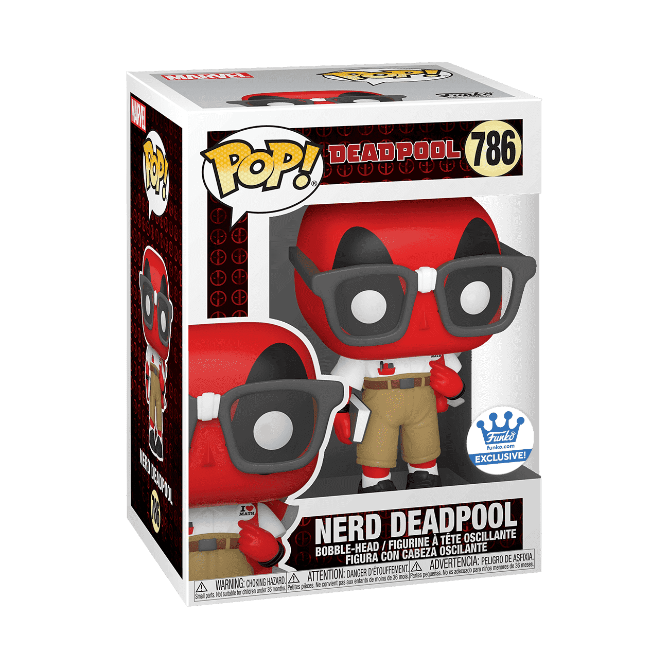 Nerd Deadpool got his homework done, so he's able to hang out with the rest of the collection now. Grab the Funko exclusive Pop! Nerd Deadpool to complete your Deadpool set. Vinyl figure is approximately 3.75 in (9.5 cm) tall.