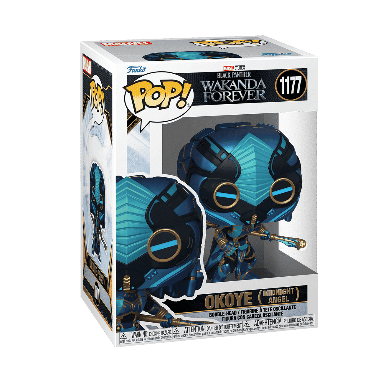 Return to the Kingdom of Wakanda with some of your favorite warriors. Pop! Okoye (Midnight Angel) is ready to take on the action as part of your Marvel collection. Collect this hero to complete your set from Marvel Studios’ Black Panther: Wakanda Forever. Vinyl bobblehead is approximately 3.55 in (9 cm) tall.