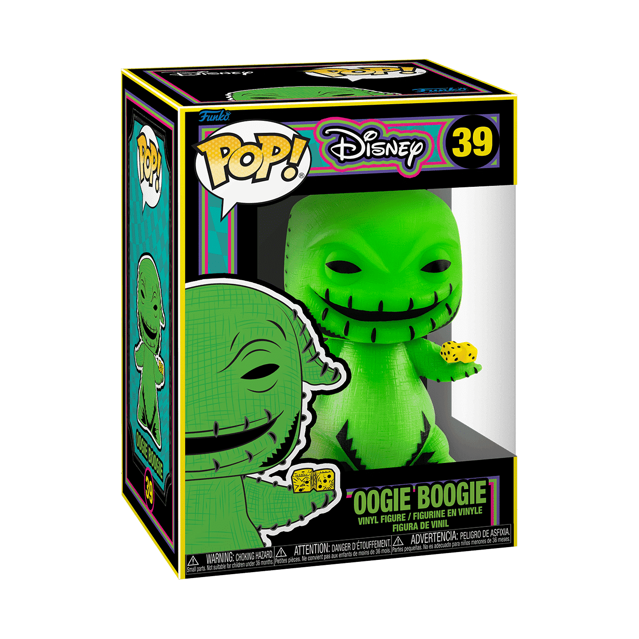 The meanest guy around is here to show you his tricks! Pop! Oogie Boogie appears in vivid coloring that is designed to shine brightly under black light, inspiring a spooky atmosphere wherever he goes. He’s thrilled to take a gamble in your Nightmare Before Christmas collection. Vinyl figure is approximately 3.75 in (9.5 cm) tall.