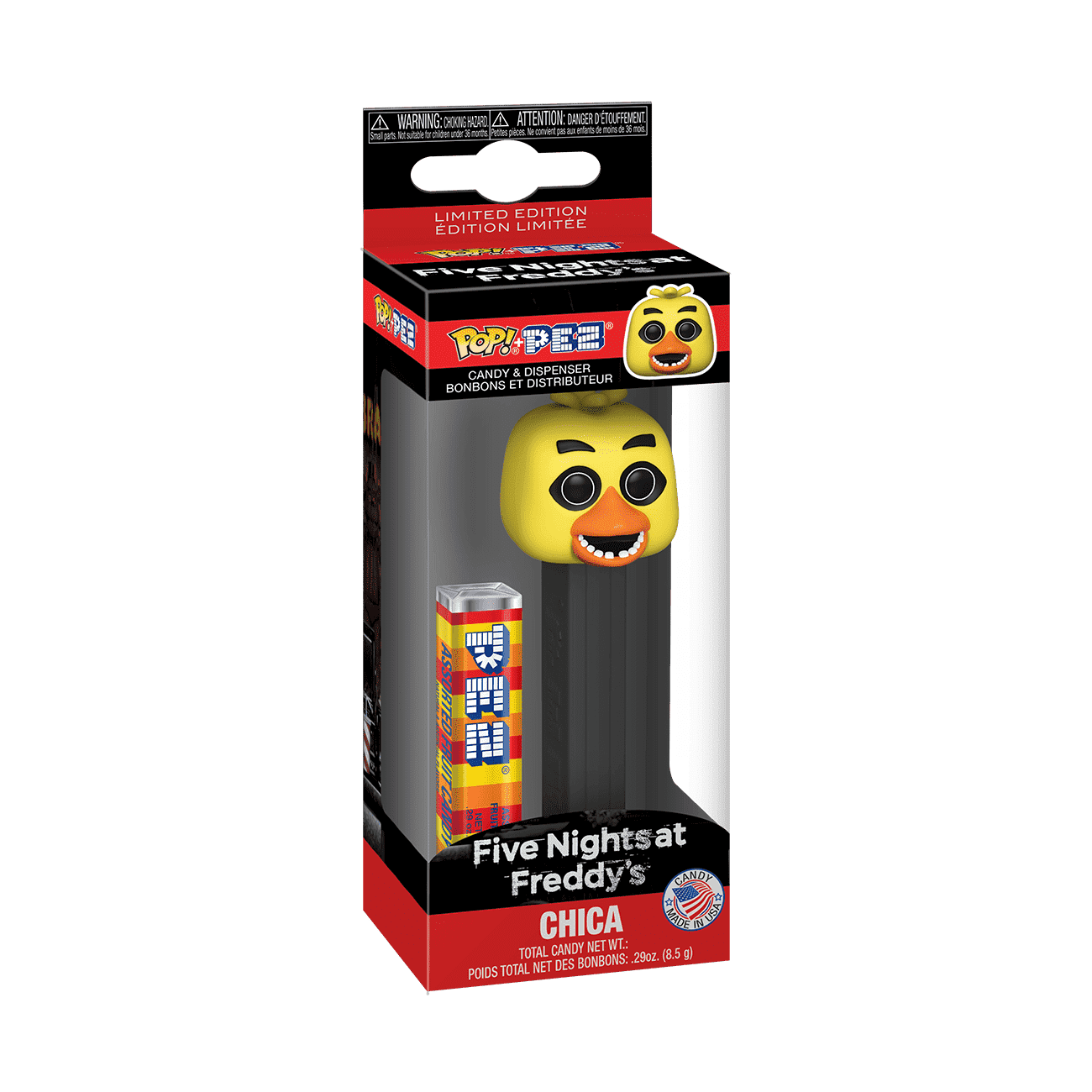 Survive the night at Freddy Fazbear’s Pizza with a Five Nights at Freddy’s Pop! PEZ® Chica. She’s here—and ready to dispense a yummy treat. Catch her before she moves! Collectible candy dispenser is 4.5 in (11.4 cm) tall.