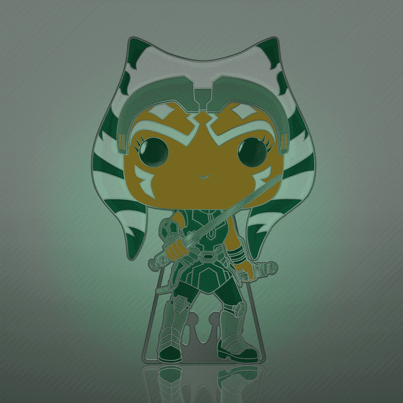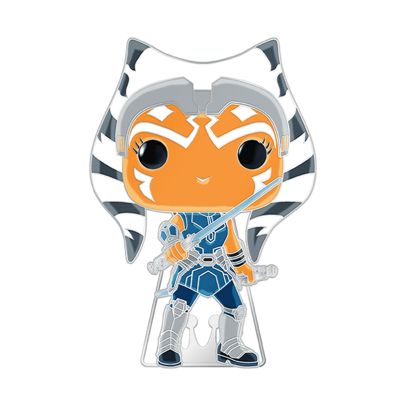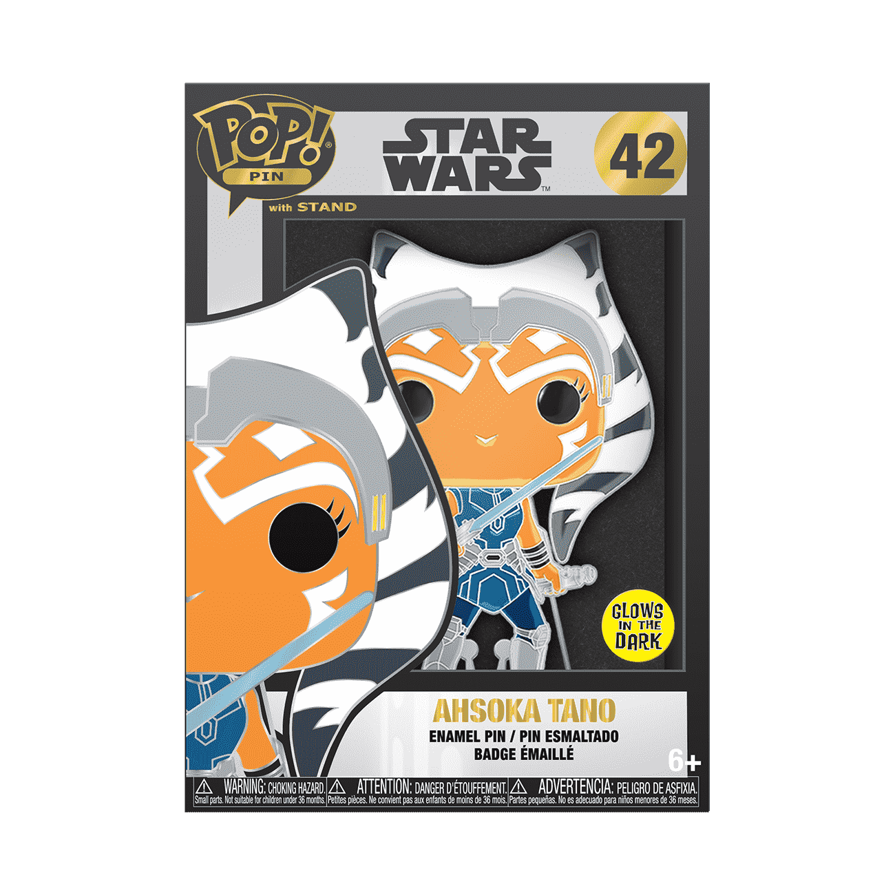 Celebrate the most stellar fandom of them all with Loungefly Pop! Pin Ahsoka™! This Padawan™ is ready to continue her training in your Star Wars: The Clone Wars™ collection. Pop! Pin features glow-in-the-dark enamel fill, translucent enamel fill, 3D molded metal, silver-colored hardware, and a built-in stand. Enamel pin is approximately 4 in (10.2 cm) tall.