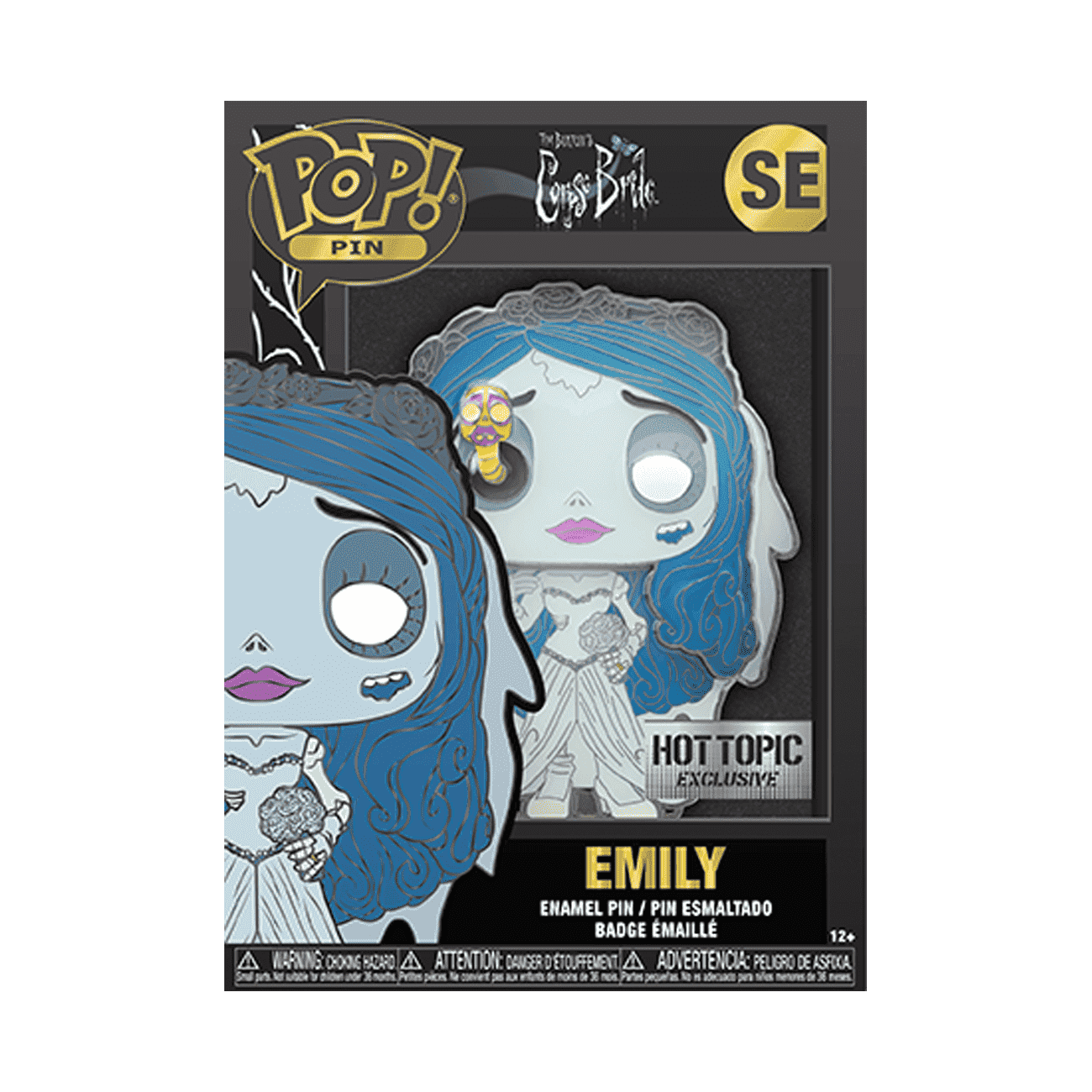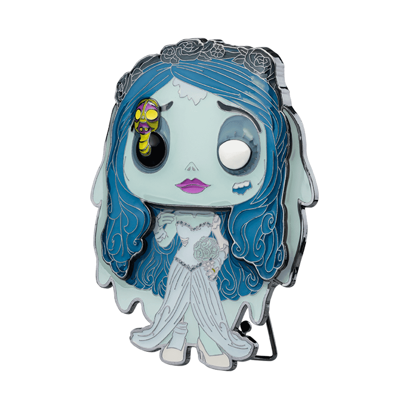 Pop! Pin Emily needs help to solve her own murder and she's looking for Victor in your Corpse Bride collection to help her. Pin features a soft enamel fill on silver colored base metal, with a built-in stand. Enamel pin is approximately 3.75 in (9.5 cm) tall.