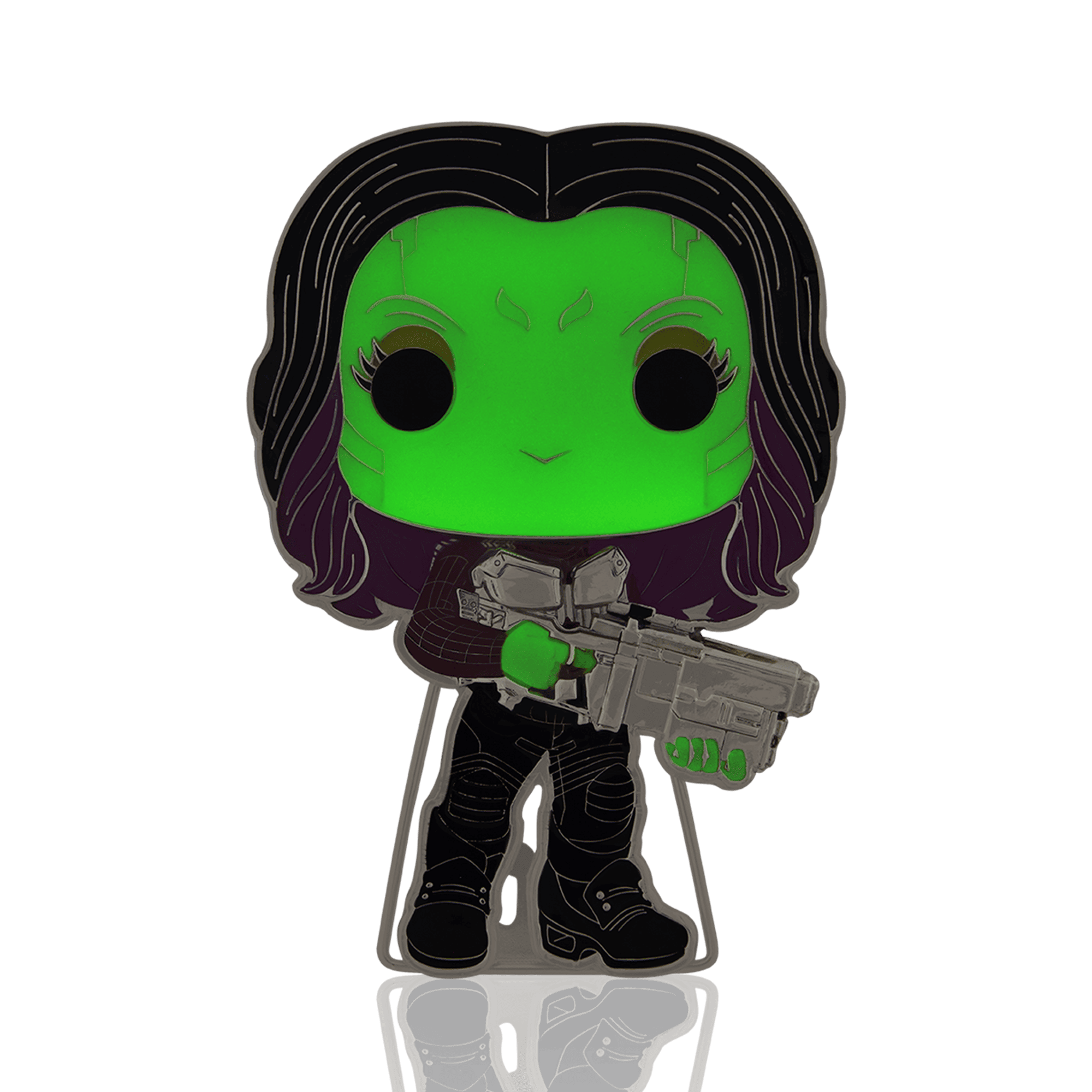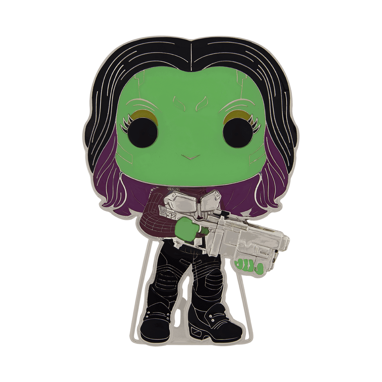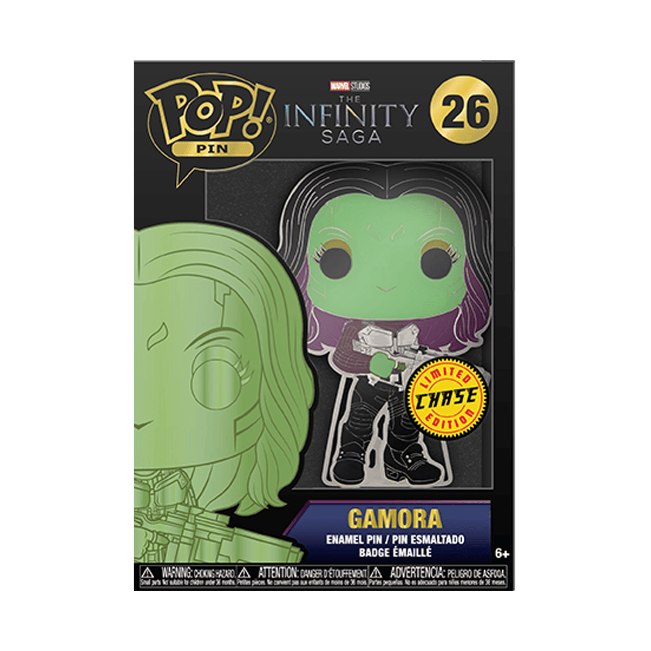 Take off on a galactic adventure with Loungefly Pop! Pin Gamora as she embarks on her next mission! Complete your Marvel Studios’ Infinity Saga™ collection with this stellar hero. This Pop! Pin features 3D molded metal, silver-colored hardware, and a built-in stand. There’s a 1 in 12 chance you may find the glow-in-the-dark green chase of Pop! Pin Gamora. Enamel pin is approximately 4 in (10.2 cm) tall.