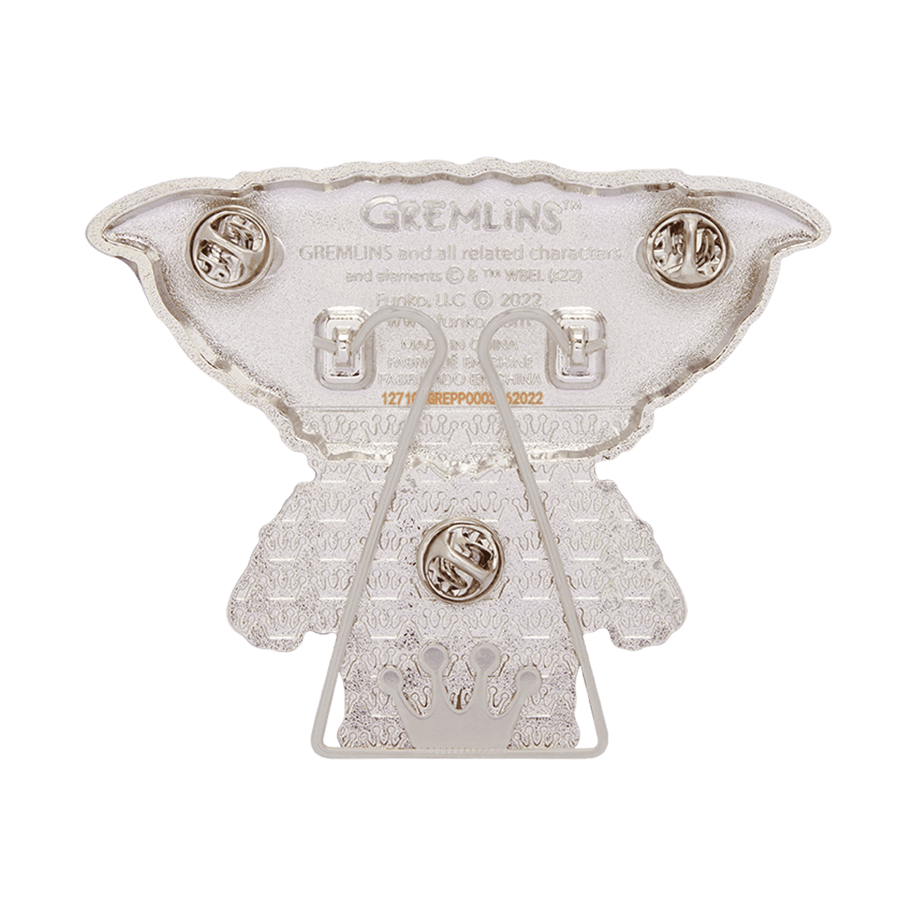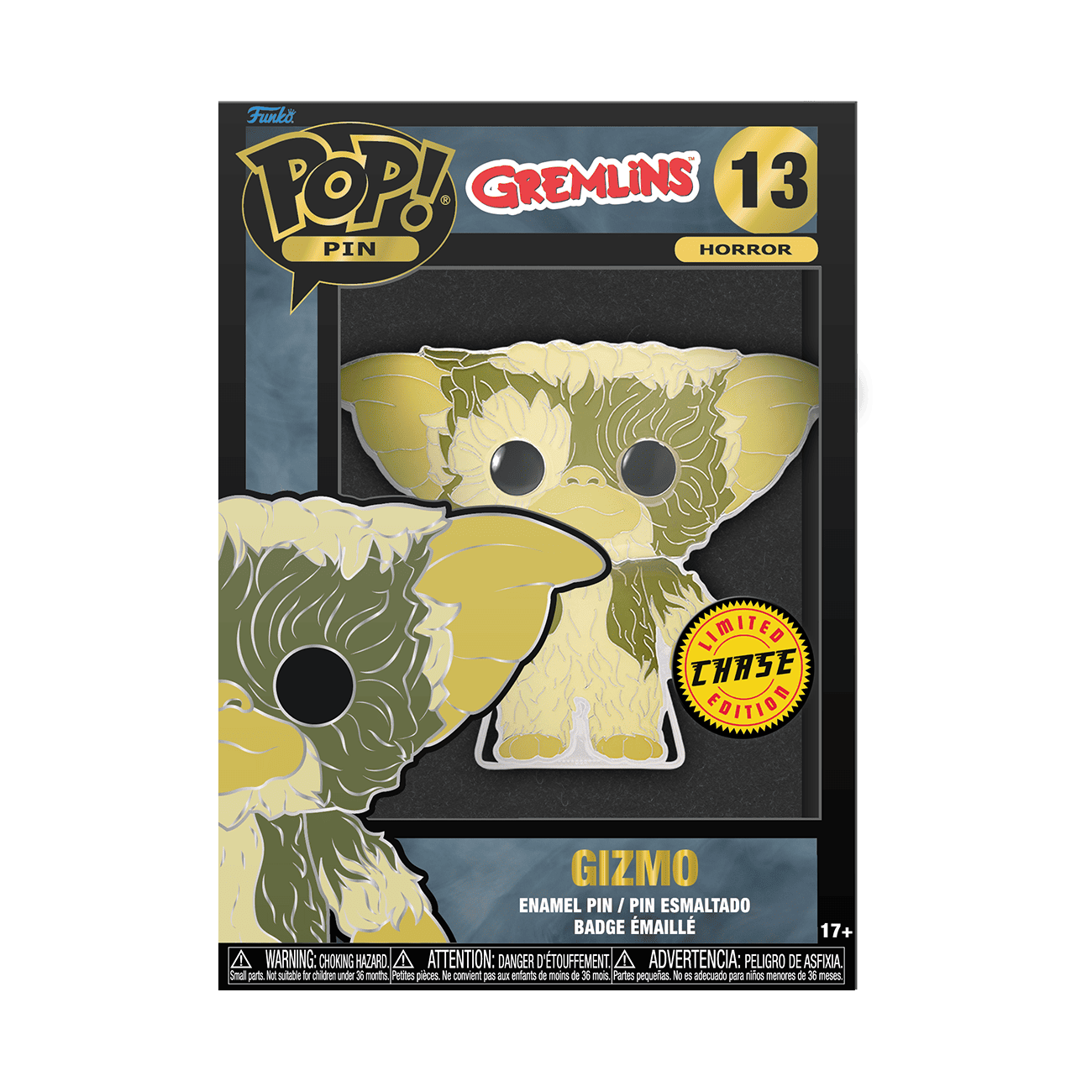 Handy with gadgets, Gizmo is ready to fix up your wardrobe as a Pop! Pin. This loveable Mogwai, as a Pop! Pin, is also flocked. There’s a 1 in 12 chance you may find the chase variant, which glows in the dark. Pin features gold-metal colored hardware, the signature Loungefly/Funko crown debossing on the back, and a built-in stand. Enamel-fill pin is approximately 4 in (10.2 cm) tall.