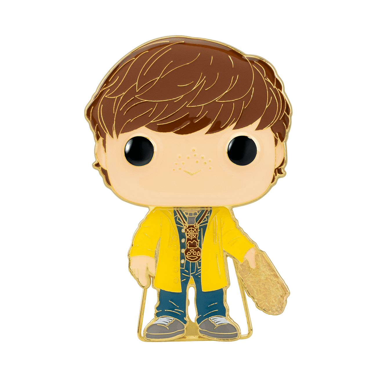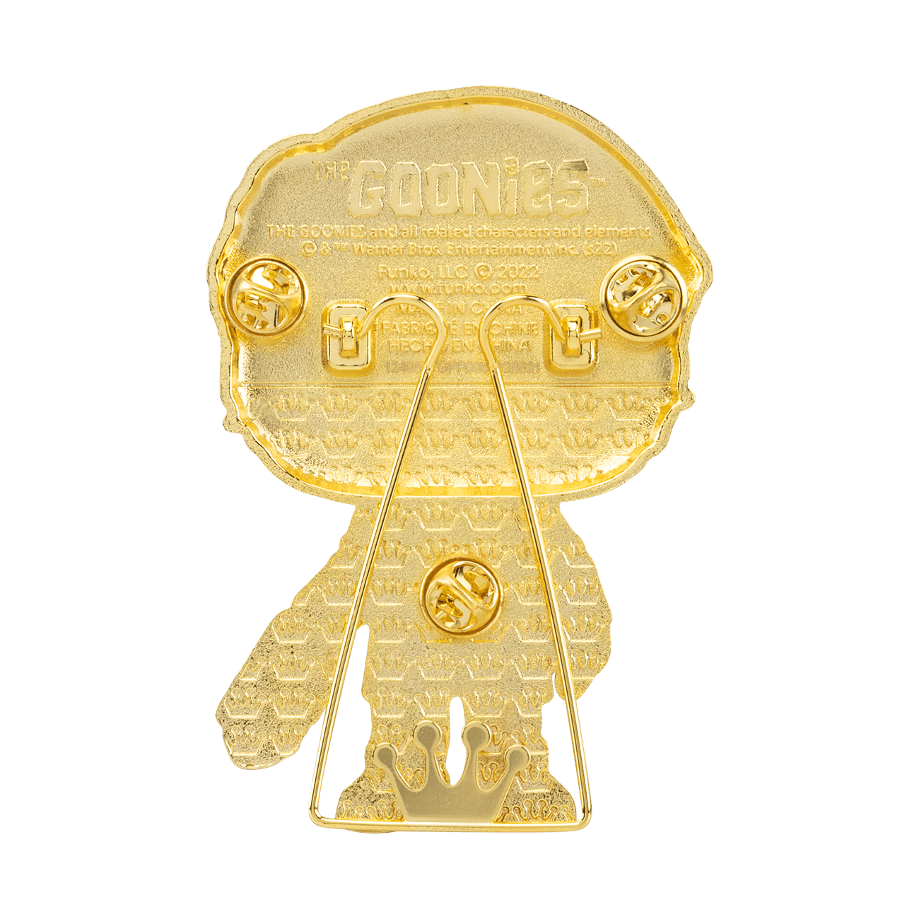 It's time to shuffle with Pop! Pin Mikey! He's got the treasure map in hand and now's your chance to collect and display The Goonies Pop Pins! Pin features gold colored hardware, and a built-in stand. Enamel pin is approximately 4 in (10.2 cm) tall.