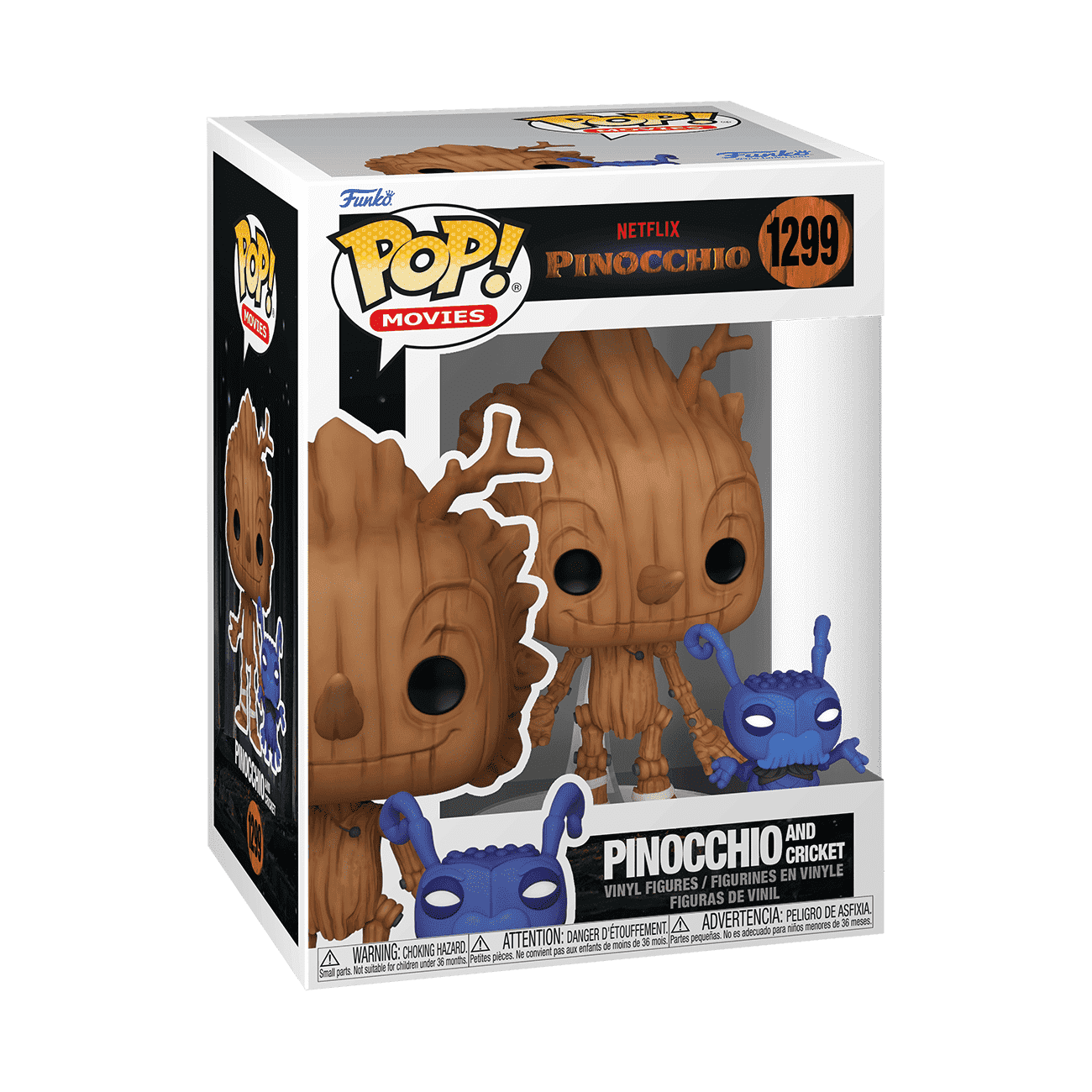 Carve out some room for Pop! & Buddy Pinocchio & Cricket from Netflix’s Pinocchio. Bring adventures to life and re-create the stories that unfold from your favorite movies. Relive the heart-warming tale of a wooden boy who comes to life in a whole new way, through Guillermo del Toro’s first animated feature film. Vinyl figures are approximately 4.32 and 1.94 in (4.9 cm) tall.