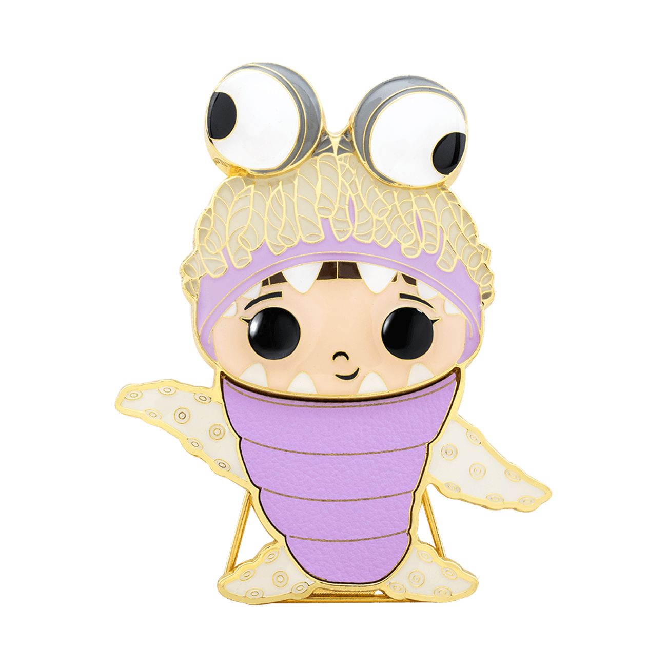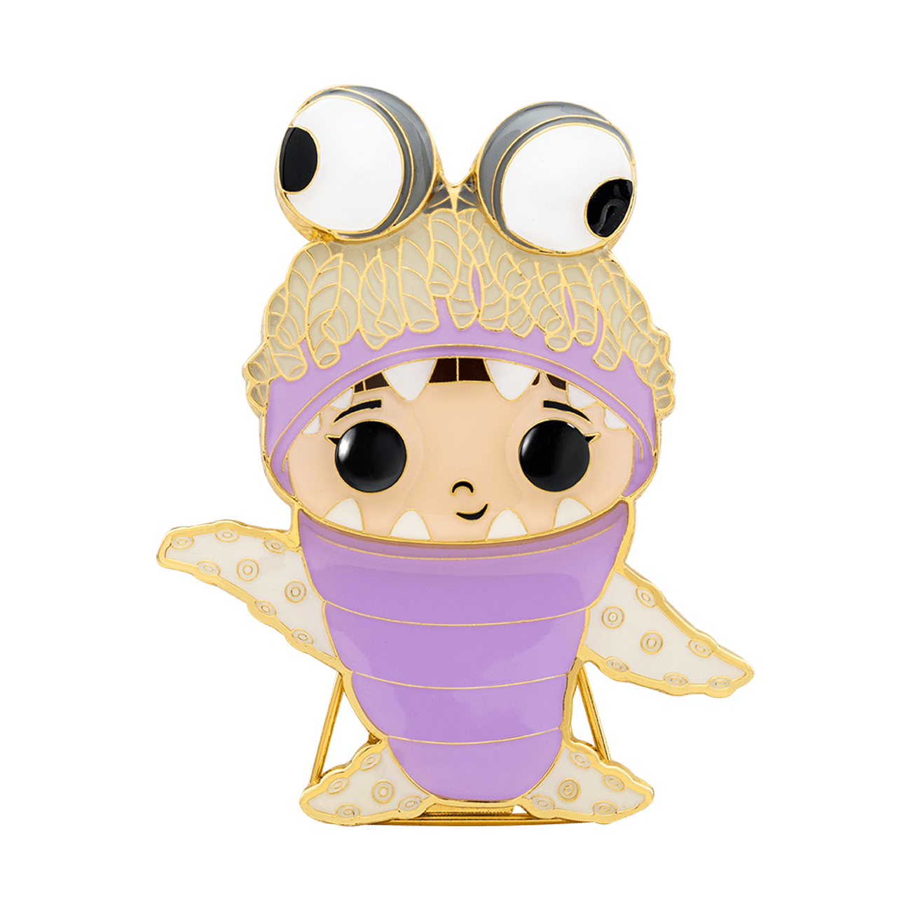 Pop! Pin Boo isn't exactly sure how she got here but she is looking for Sully, aka "Kitty", in your Monsters, Inc. collection. Typically there's a 1 in 12 chance of finding this chase variant, but you can collect it now. Pin features a soft enamel fill on gold colored hardware and a built-in stand. Enamel pin is approximately 4 in (10.2 cm) tall.
