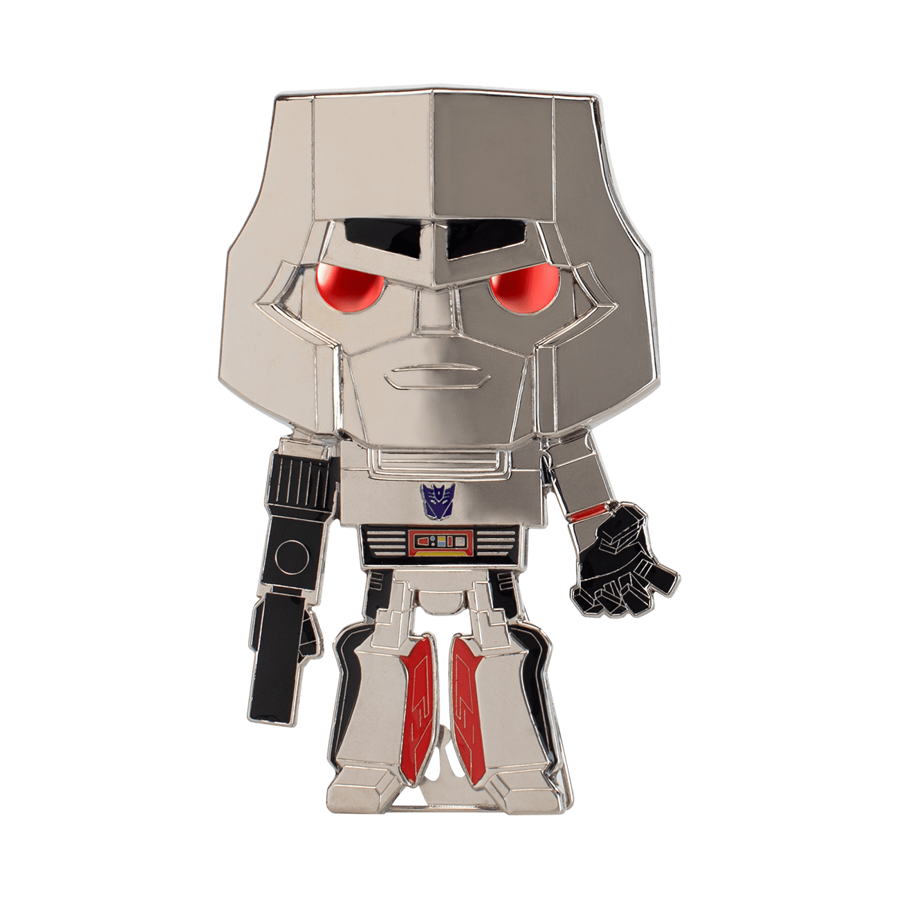 All hail Megatron! Build your pop-culture collection with this Loungefly Transformers™ Pop! Megatron™ Pin! Pin features shiny silver-colored hardware and a built-in stand. Enamel pin is approximately 4 in (10.2 cm) tall.