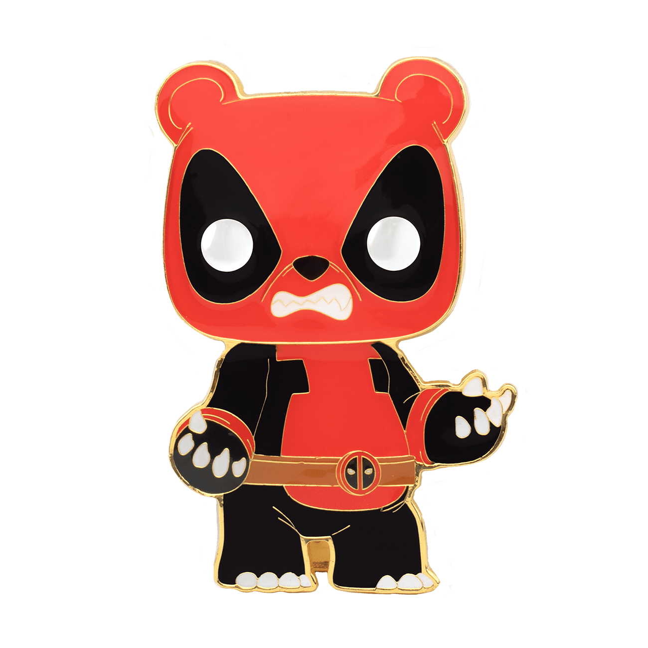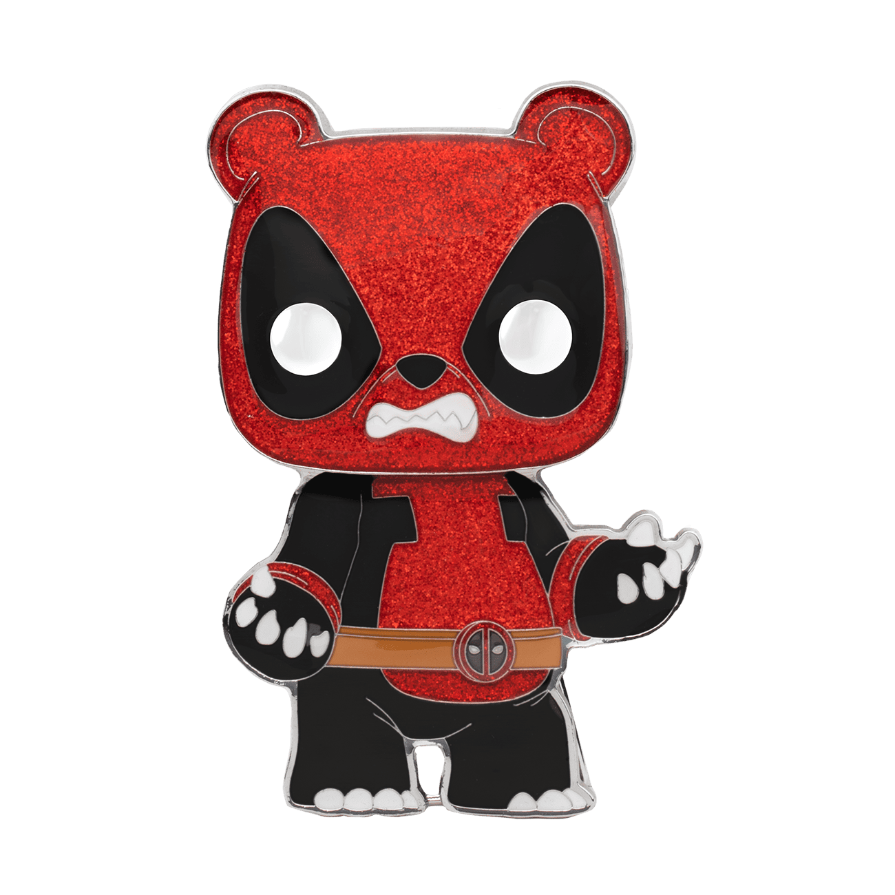 Pop! Pin Panda Deadpool is here to stand beside King Deadpool and the rest of your Marvel collection. There's a 1 inĀ 12 chance you may find the glitter chase of Panda Deadpool featuring silver hardware. Pin features gold colored hardware, and a built-in stand. Enamel pin is approximately 4 in (10.2 cm) tall. Please note: Chase variants are shipped at random. Receiving a chase with purchase is not guaranteed.