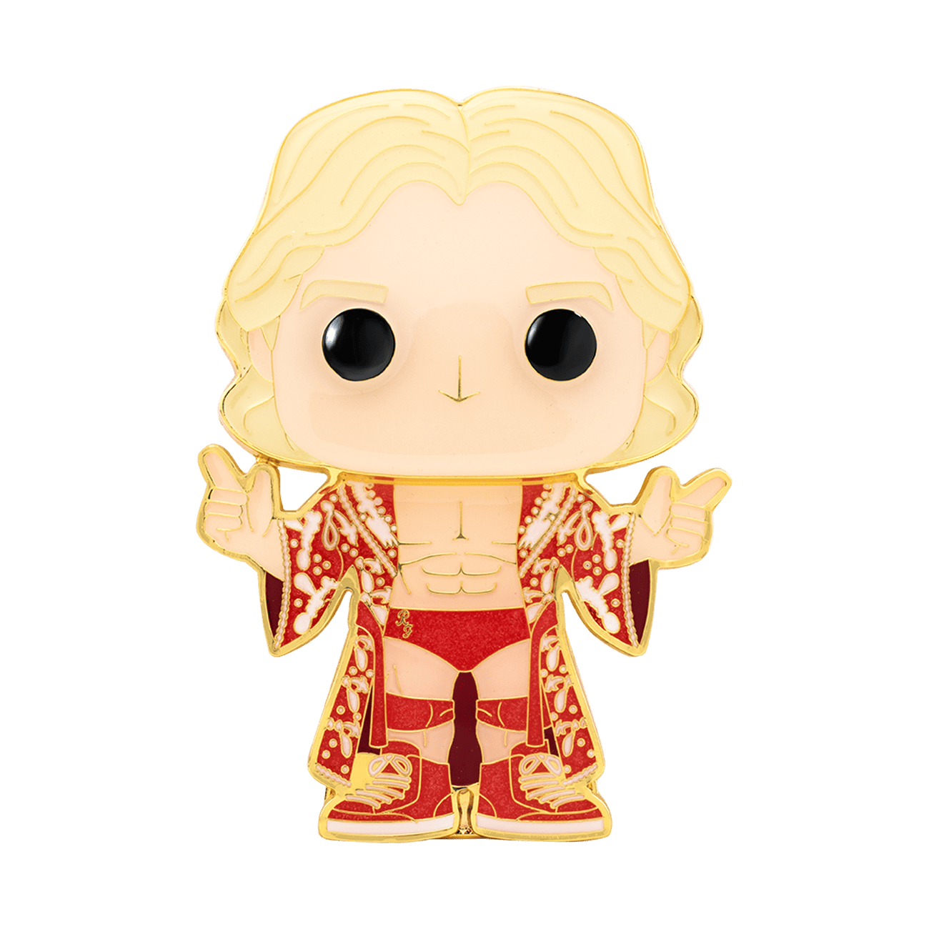 Ric Flair is stepping into the ring of your WWE collection as a Pop! Pin. Who will win the title in your collection? Pin features a soft enamel fill on gold colored hardware and a built-in stand. Enamel pin is approximately 4 in (10.2 cm) tall.
