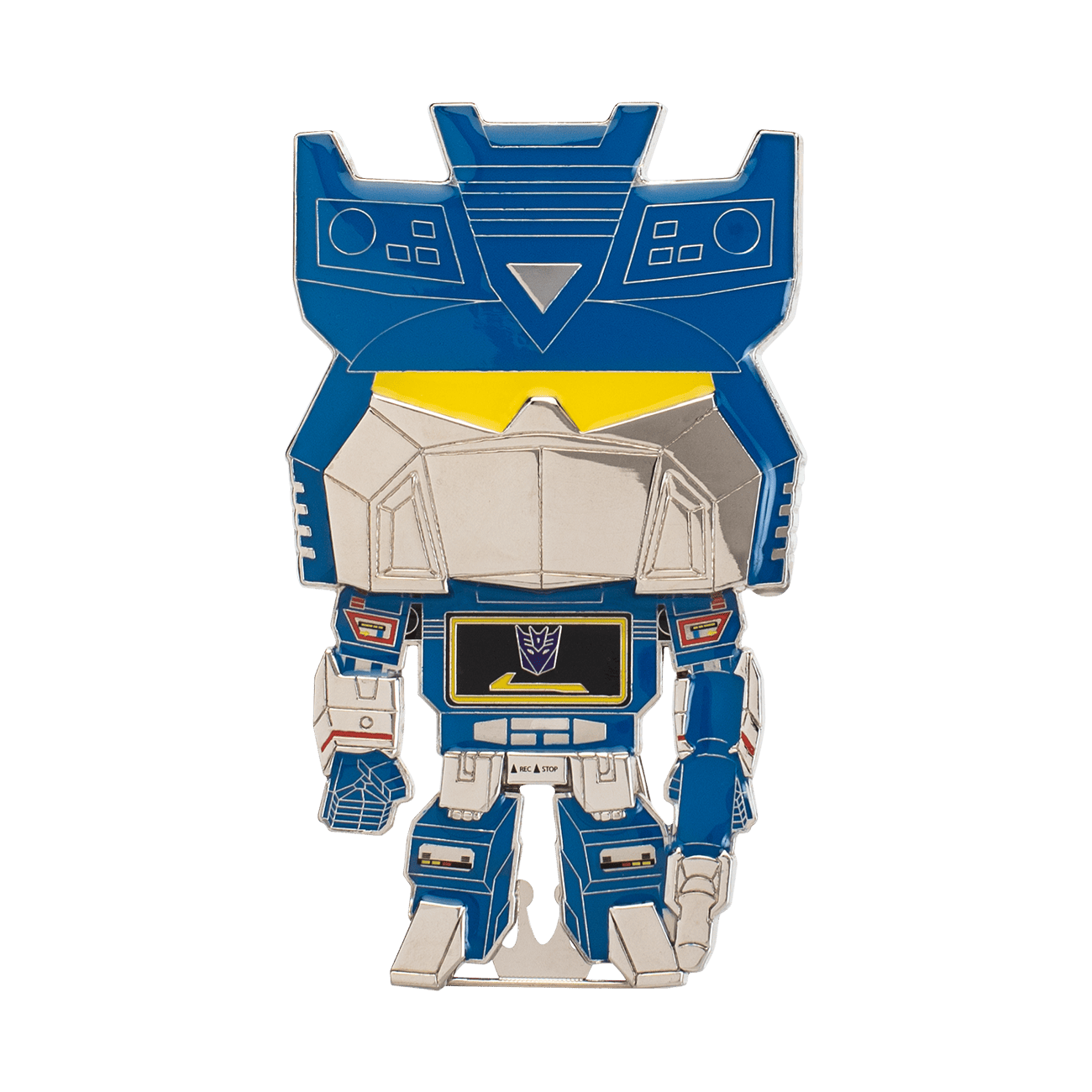 Transmit waves of pop-culture style with this Loungefly Transformers™ Pop! Soundwave™ Pin! Pin features shiny silver-colored hardware and a built-in stand. Enamel pin is approximately 4 in (10.2 cm) tall.