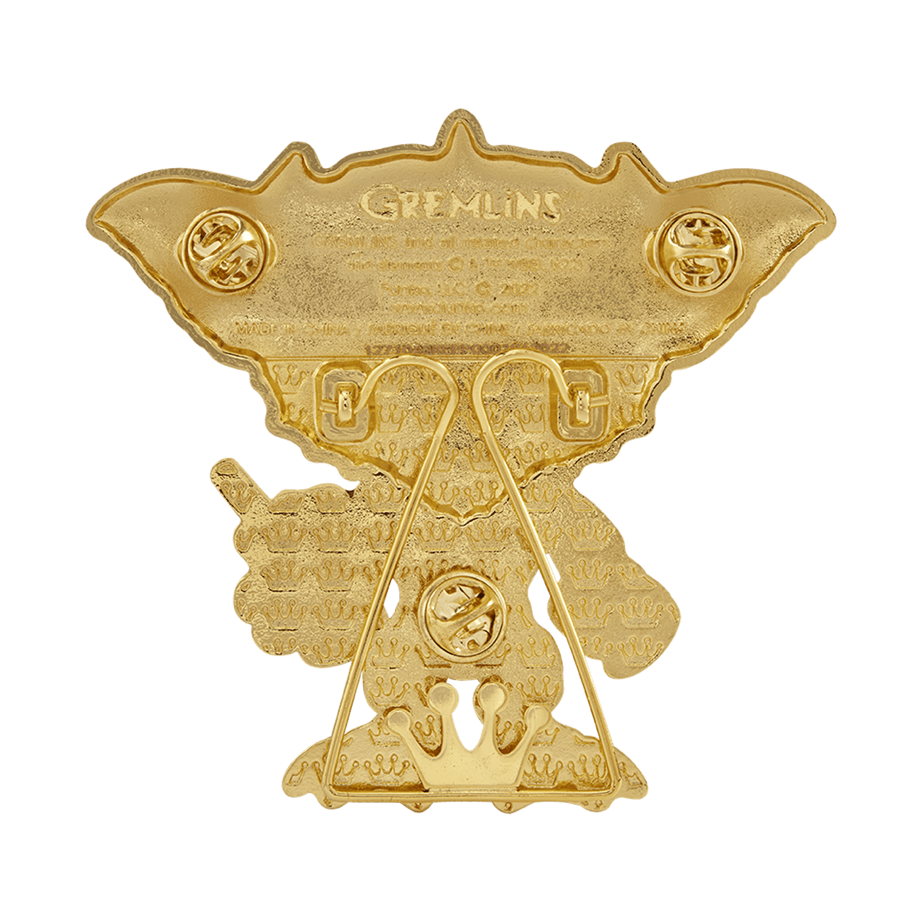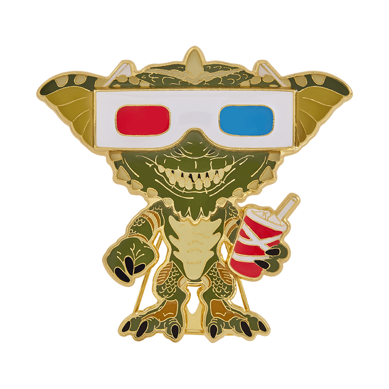 Yum! Yum! Stripe is on the hunt for movie snacks and wants to follow you wherever you go as a Pop! Pin. In the dark, Stripe’s yellow scales, his teeth, and his body glow! Grow your Gremlins Pop! Pin collection! Pin features glow-in-the-dark details, gold metal-colored hardware, the signature Loungefly/Funko crown debossing on the back, and a built-in stand. Enamel-fill pin is approximately 4 in (10.2 cm) tall.