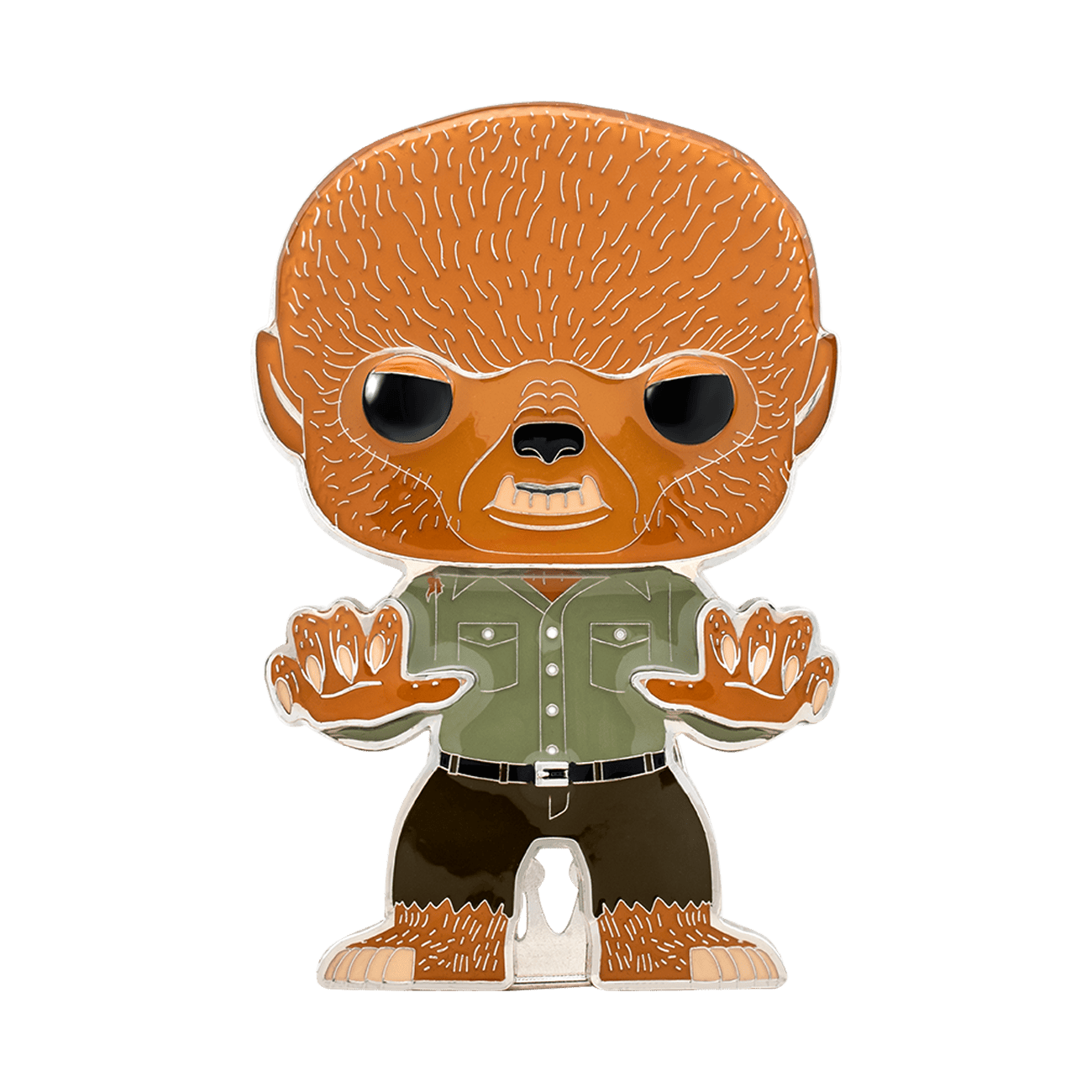 Complete your Universal Studios Monsters collection with the Pop! Pin The Wolf Man. Add this frightful figure to your horror collection as a pin! Pin features a soft enamel fill on silver colored hardware and a built-in stand. Enamel pin is approximately 4 in (10.2 cm) tall.