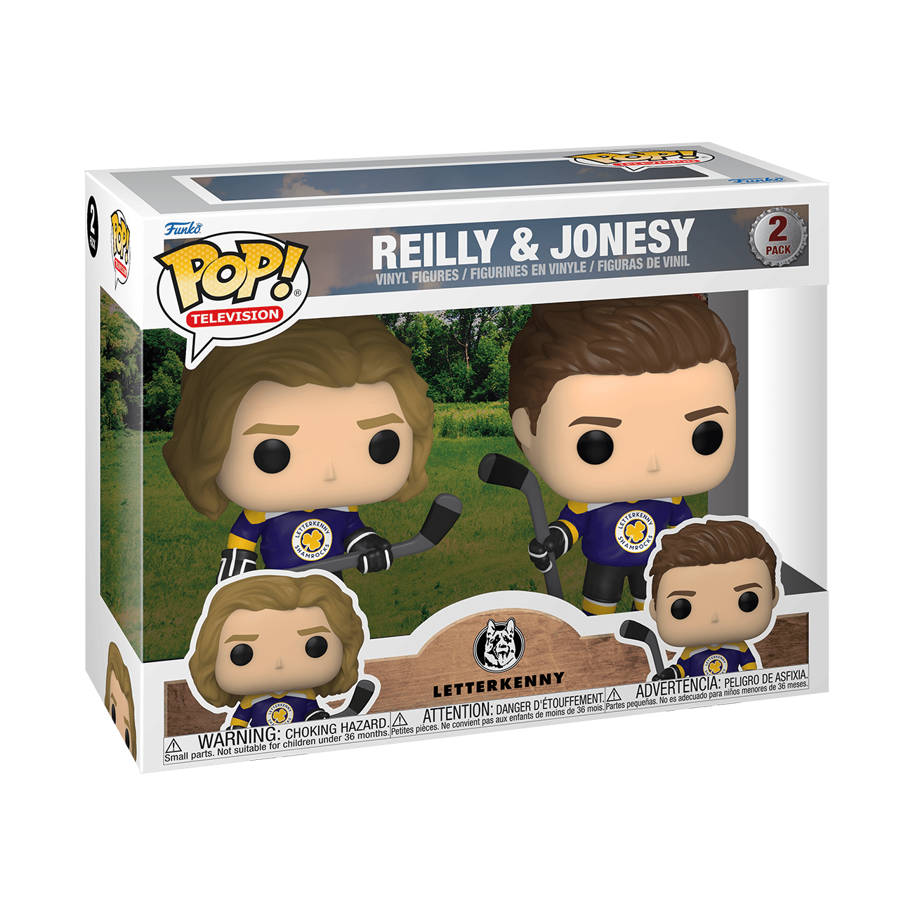 Stay sharp to catch this quick-witted, exclusive Letterkenny Pop! 2-Pack including Pop! Reilly and Pop! Jonesy for your collection. Dressed in their Letterkenny Shamrocks uniforms, Pop! Reilly and Pop! Jonesy are ready to join Daryl, Dan, Katy, and Wayne in your collection. Vinyl figures are approximately 4.25-inches and 5-inches tall.