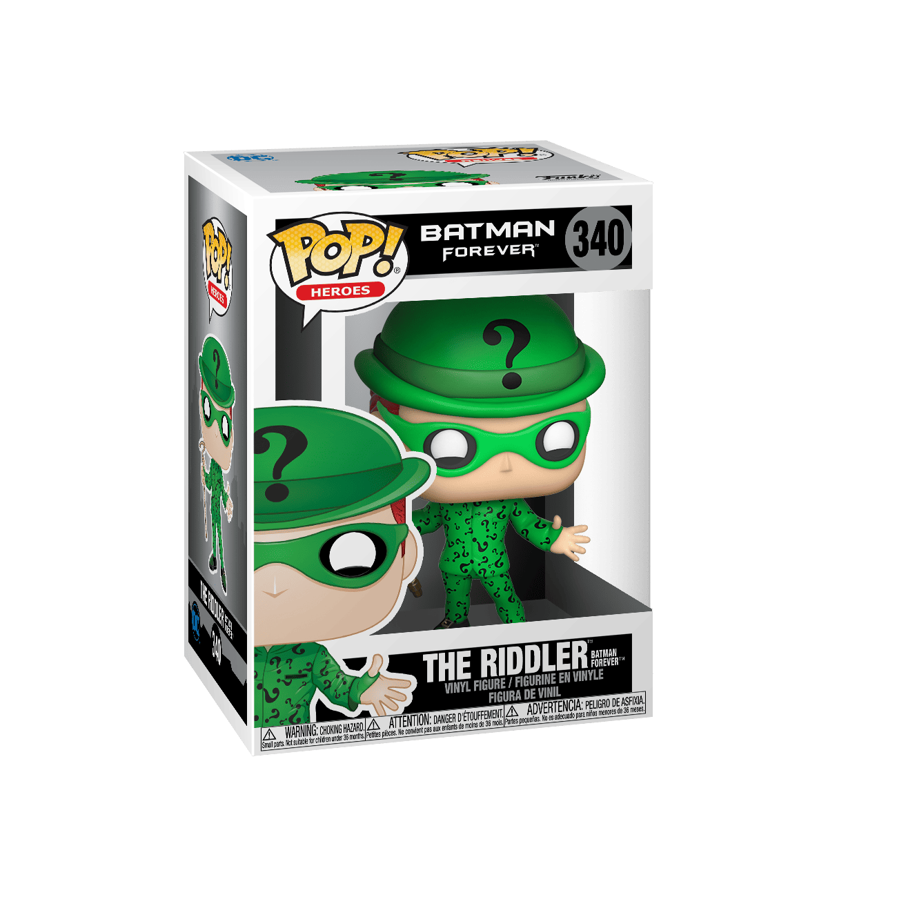He has a genius-level IQ, but he still leaves clues of his crimes to taunt Batman. Collect this Pop! of The Riddler for your Batman Forever collection. It'll make it much easier for Batman to him track down. Collectible stands 3.75 in (9.5 cm) tall.