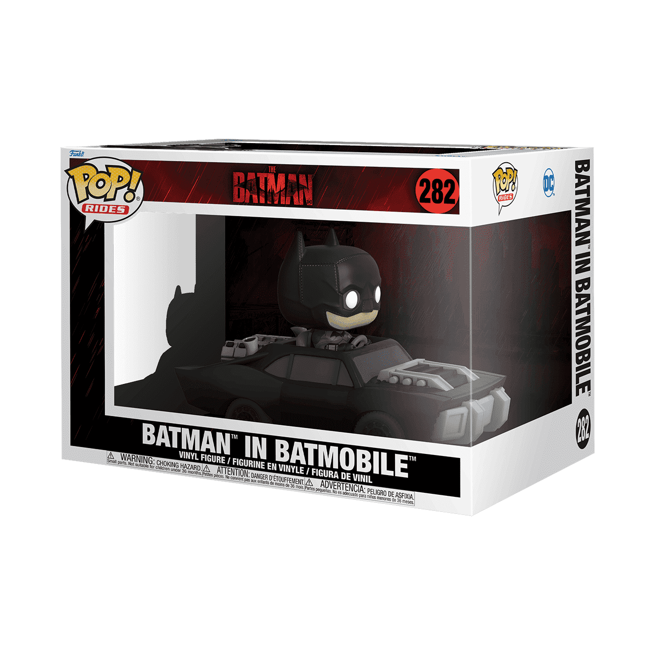 What zooms through the gritty streets of Gotham™ in search of vengeance? The Batmobile™, driven by Batman. Take a ride with Pop! Rides Batman™ in Batmobile and add to your collection of The Batman. Vinyl figure is approximately 5.25 in (13.3 cm) tall.
