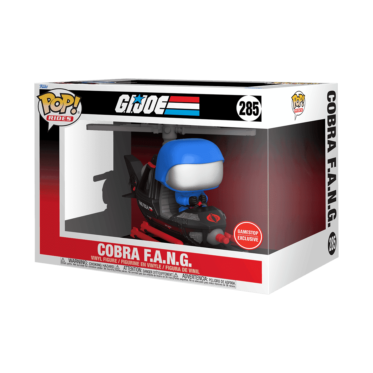 Pop! Ride COBRA F.A.N.G. has received orders to land and take position in your G.I. Joe collection. The COBRA F.A.N.G.'s design is reminiscent of the 1980s action figure. Capture this GameStop exclusive now! Vinyl figure is approximately 5-inches tall and 7-inches long.