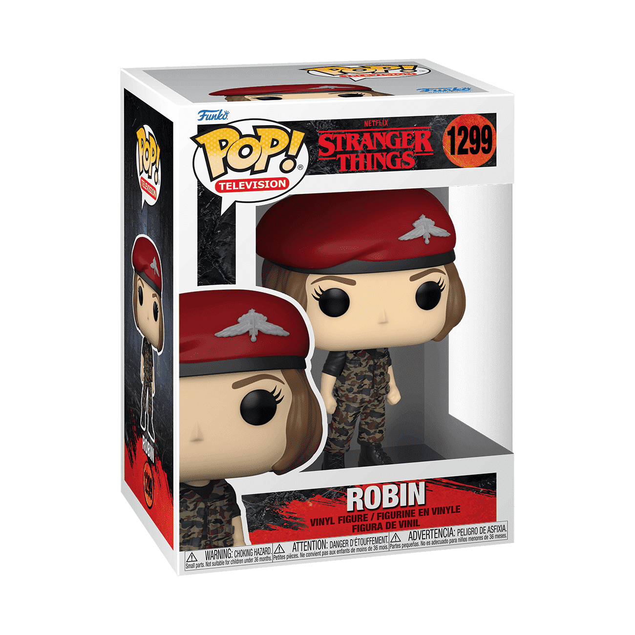 Hawkins, Indiana is harboring dangerous and supernatural secrets. Bring home the happenings, characters, and breakthrough moments of Stranger Things with your own Pop! Robin wearing her hunter outfit. Vinyl figure is approximately 4 in (10.2 cm) tall.