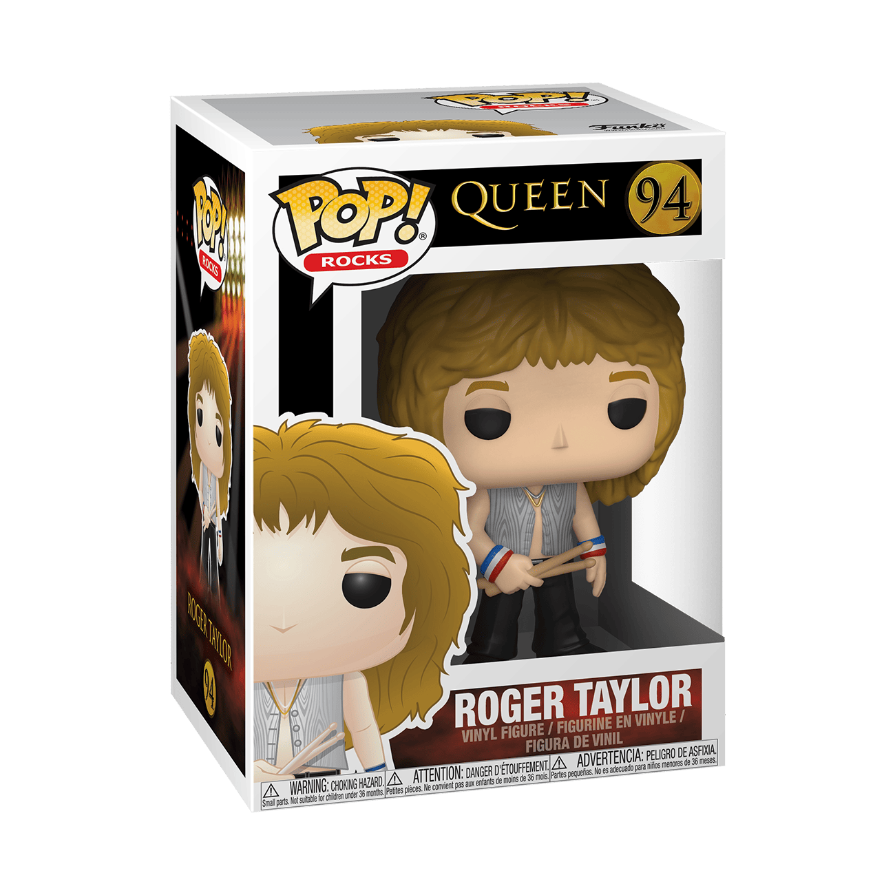 Pop! Roger Taylor is ready to rock out with the rest of his Queen bandmates. Is the stage ready for legendary drummer, Roger Taylor, to perform in your music collection? Vinyl figure is approximately 4.25 in (10.8 cm) tall.