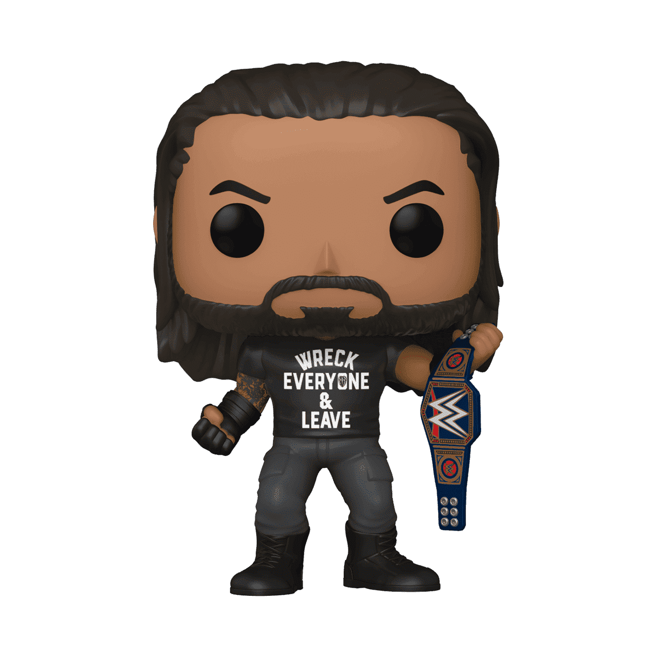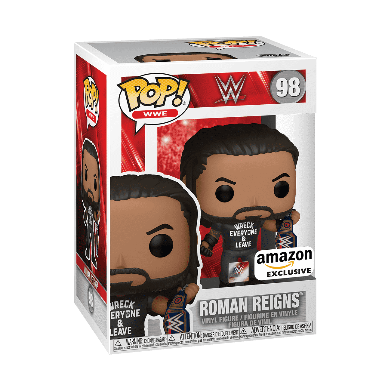 Your collection won't know what hit it when the exclusive Pop! Roman Reigns steps into the ring! Funko Pop! Roman Reigns is holding up one of the WWE Championship titles and he's here to "wreck everyone" in your collection. This collectible figure is exclusively available here, so act fast to complete your WWE set! Vinyl figure is approximately 3.75 in (9.5 cm) tall, and comes in window display box.