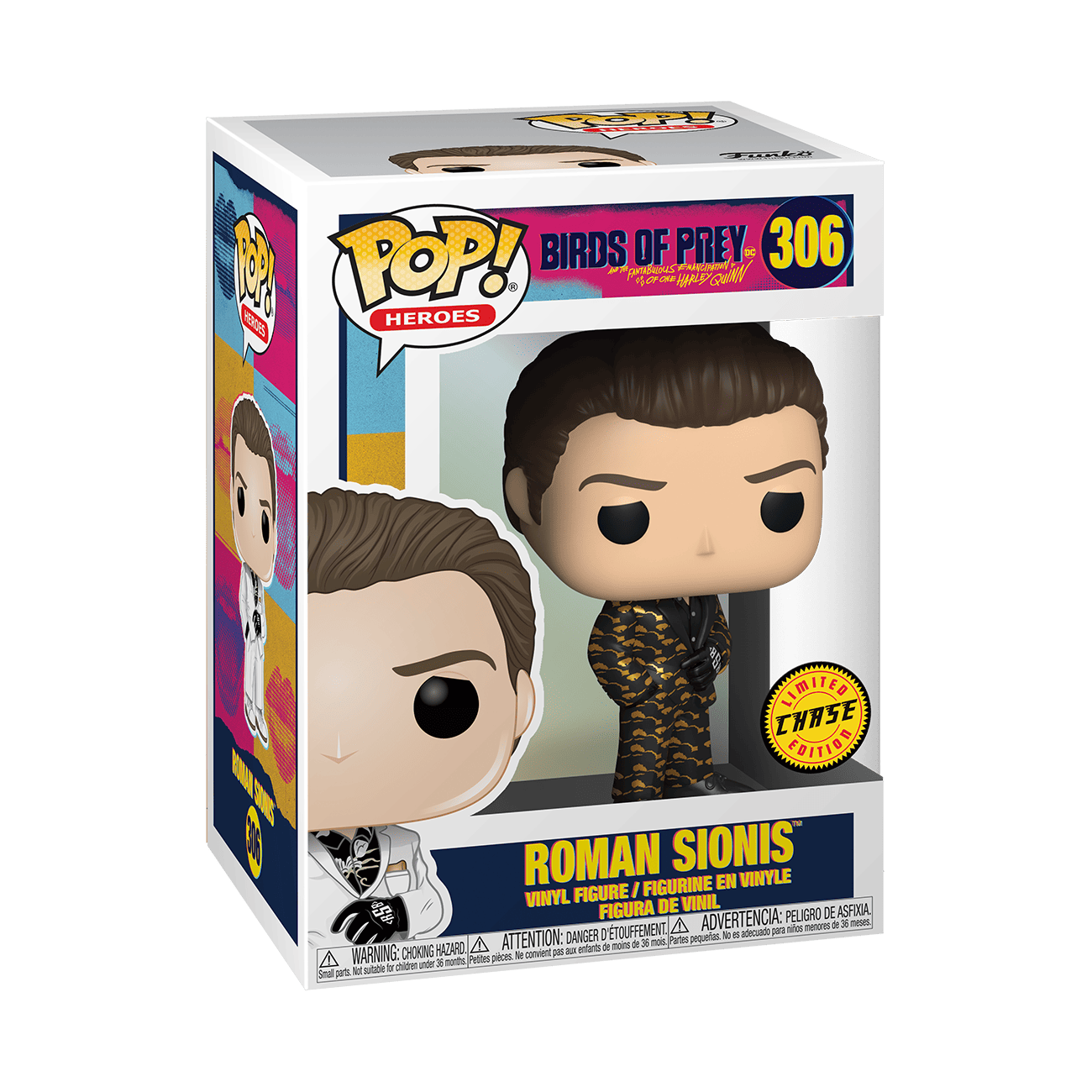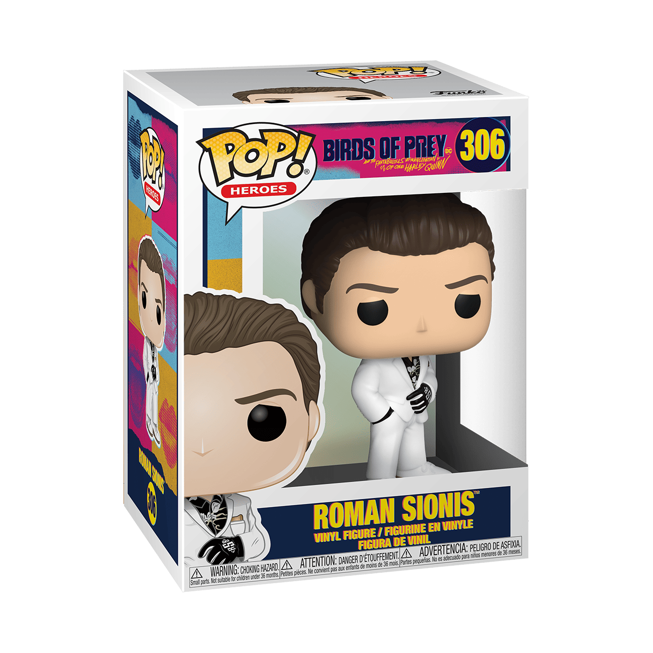 Pop! Heroes Birds Of Prey Roman Sionis is ready to join your DC vinyl figure party in his movie-inspired white suit! Vinyl figure is approximately 3.75 in (9.5 cm) tall. There's a 1 in 6 chance you may find the Black Suit chase variant. Please note: Chase variants are shipped at random. Receiving a chase with purchase is not guaranteed.