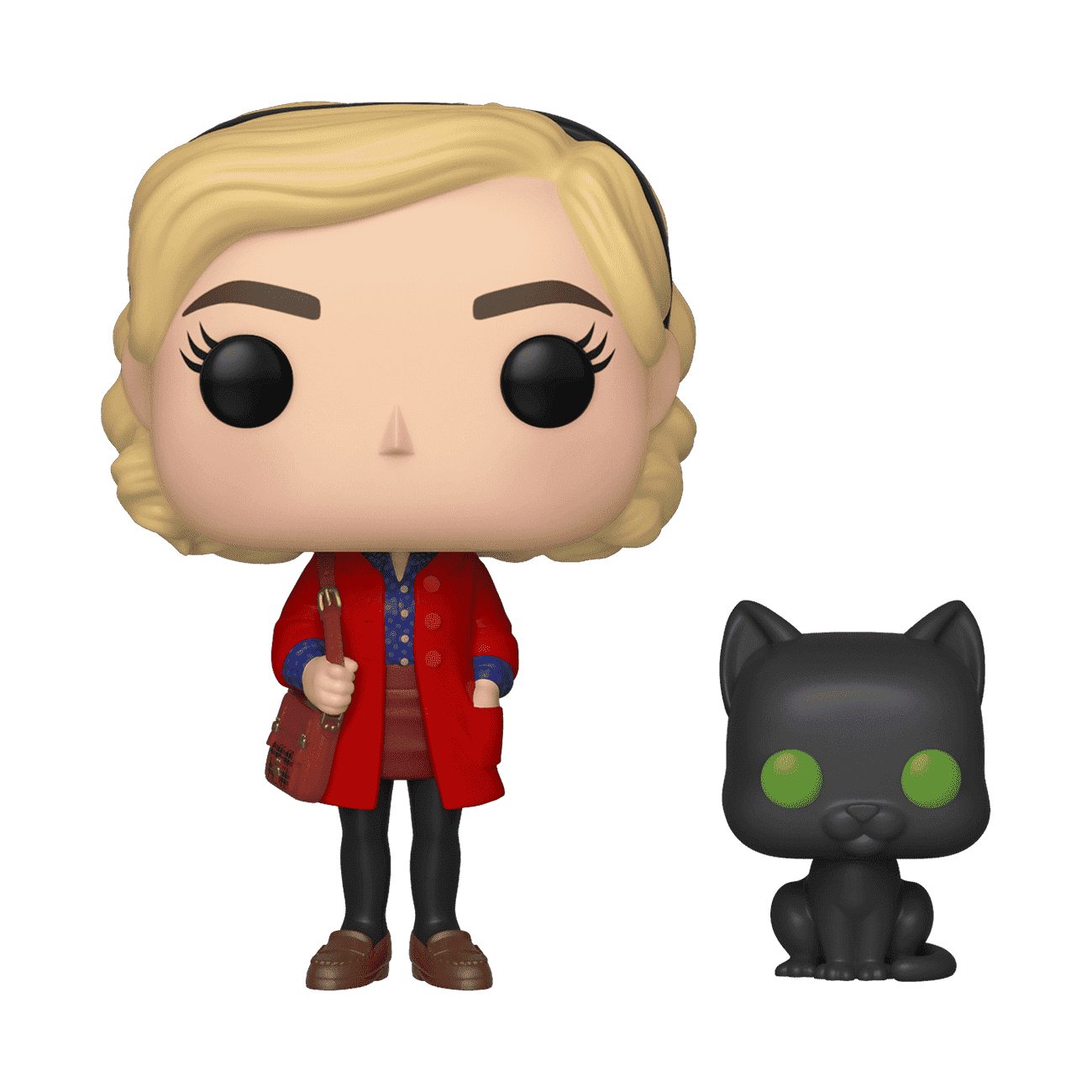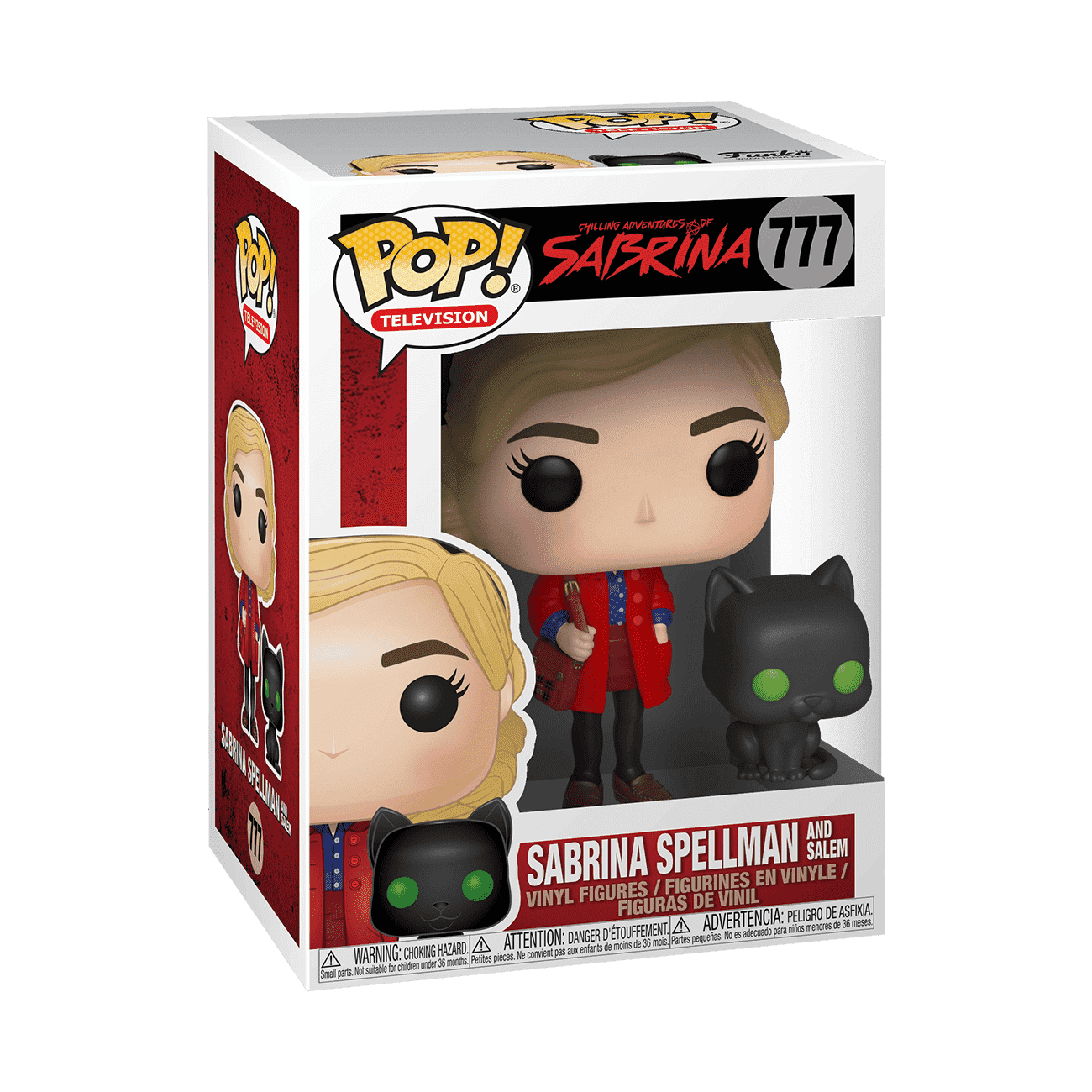 Sabrina works to navigate the duality of being half-human and half-witch while also protecting Greendale, her family, and her human friends from the evil that is trying to destroy them. Bring Pop! Sabrina Spellman and Salem into your home to join your collection of The Chilling Adventures of Sabrina . They'll protect and unite the set. Vinyl figures are approximately 4-inches and 1.5-inches tall.